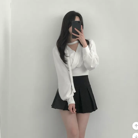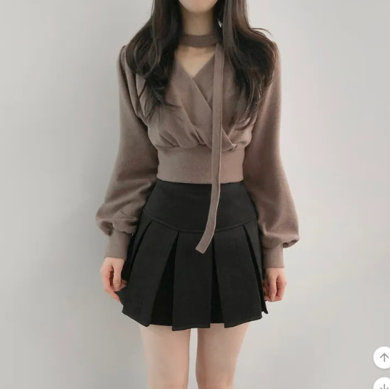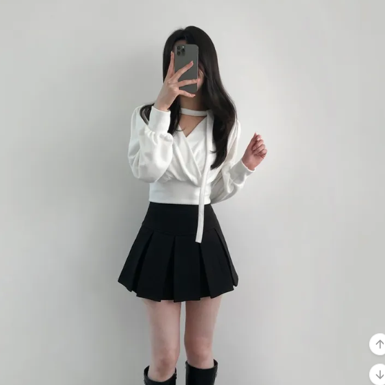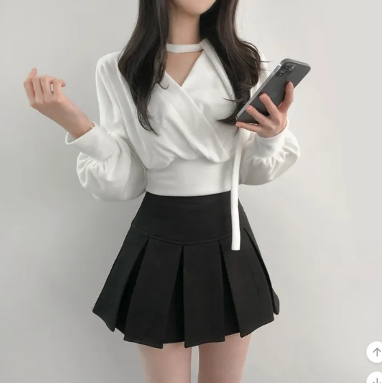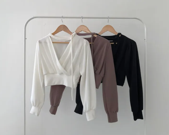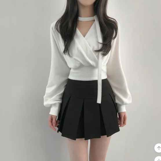 (•‾⌣‾•)交衩領小設計露出鎖骨位好顯瘦❤️日常穿搭必不可少💕