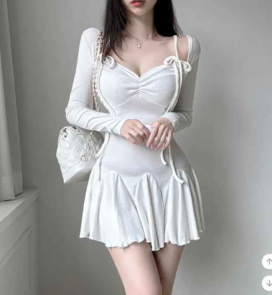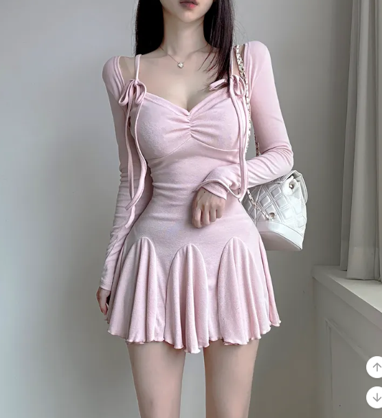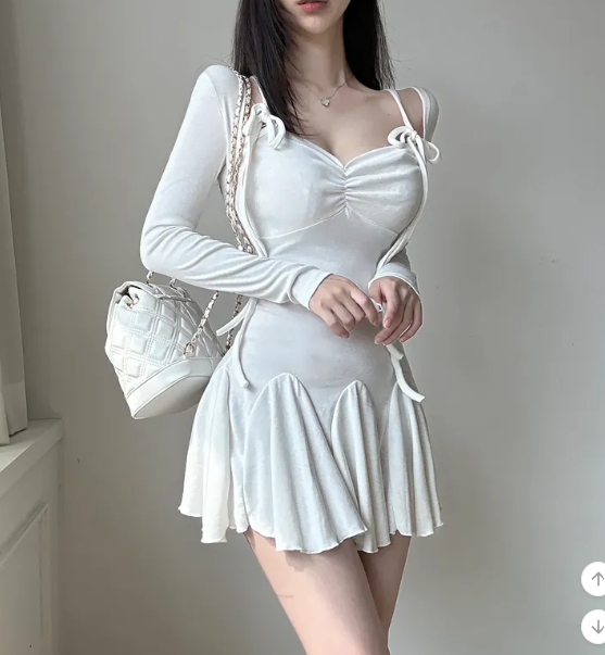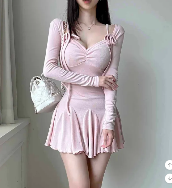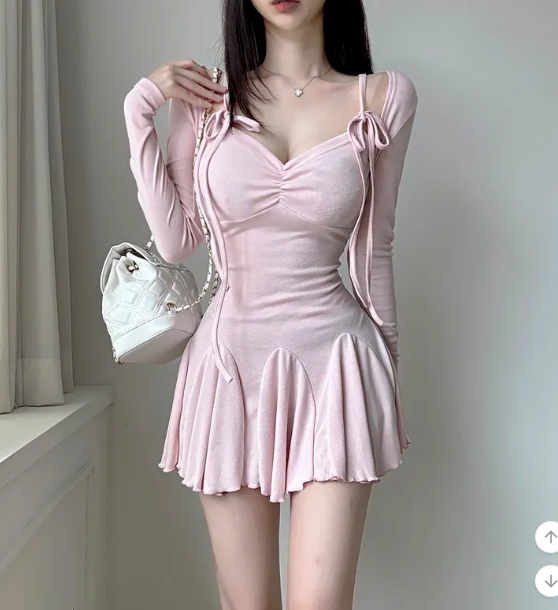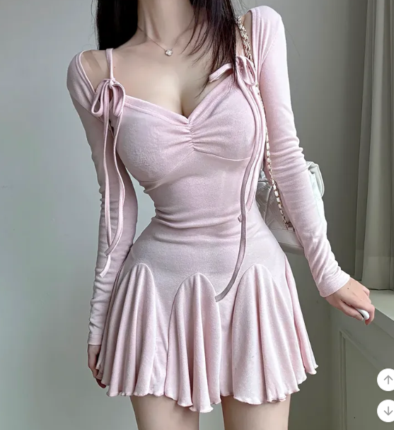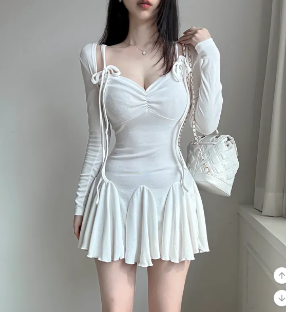₍˄·͈༝·͈˄₎◞︎ ̑̑長袖綁帶蝴蝶結荷葉邊連身裙💕出街或者約會都好適合❤️