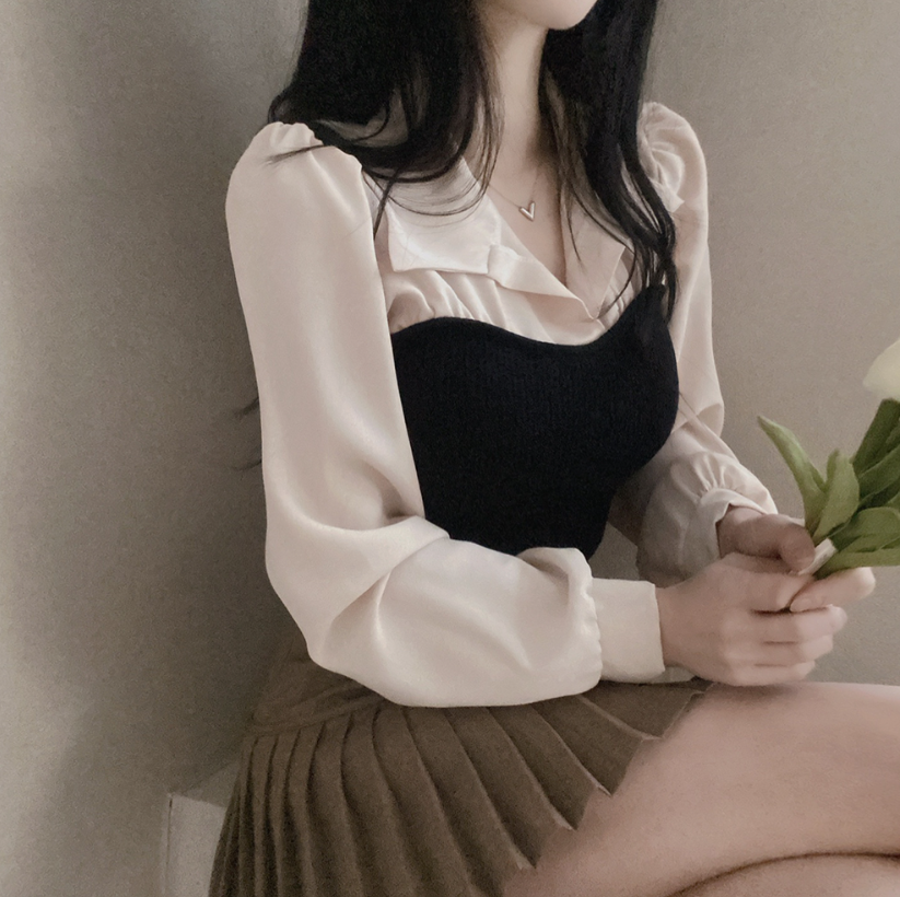 (•‾⌣‾•)雪紡拼接恤衫❤️日常穿搭必不可少💕