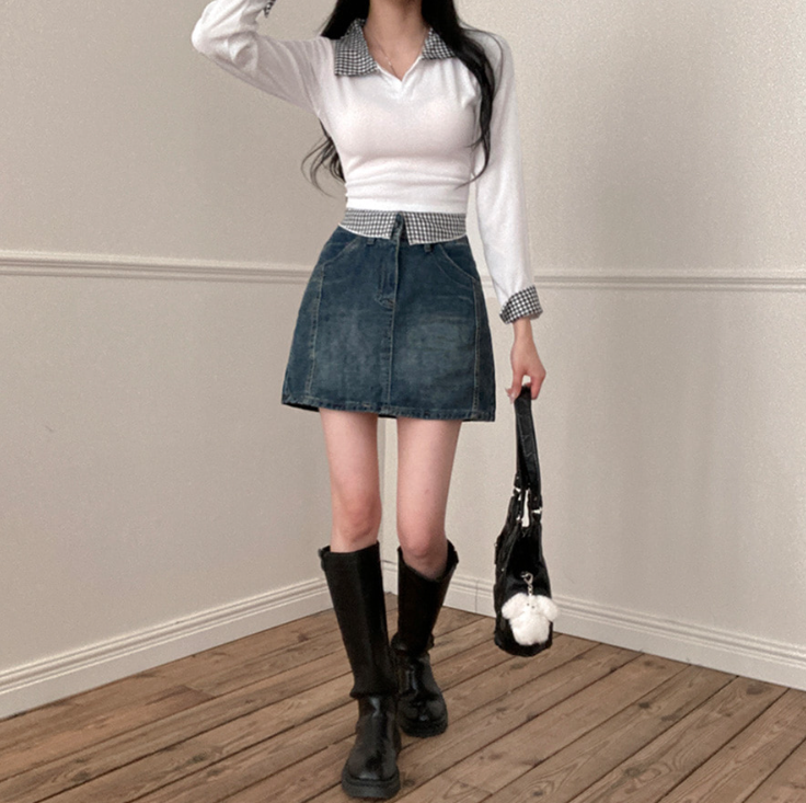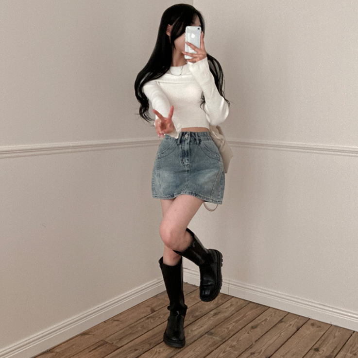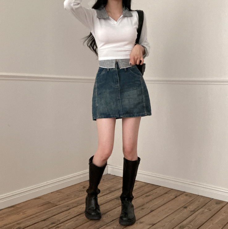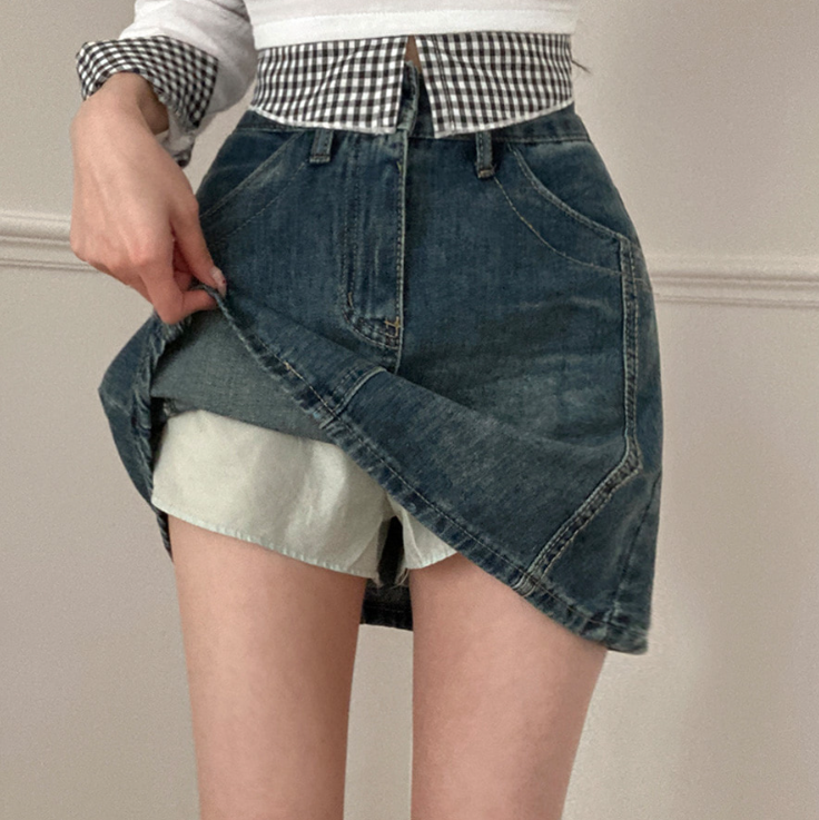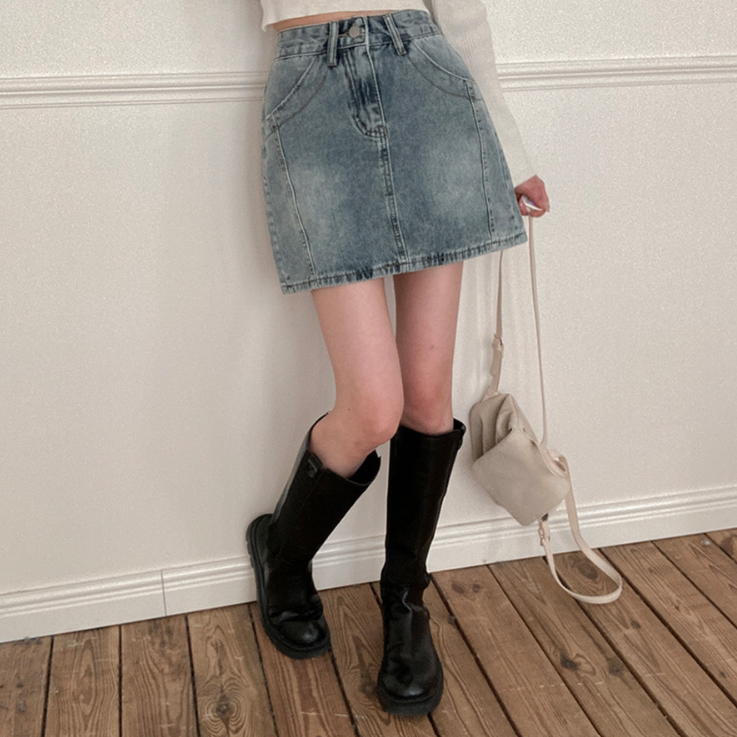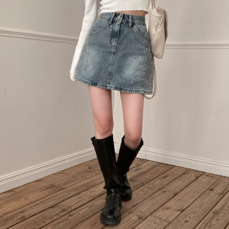 (●ˇ∀ˇ●)適合四季穿著既牛仔短裙❤️A字版型可以遮蓋小肚腩💕
