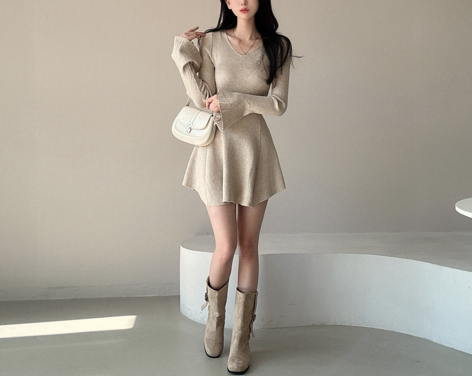 (●'◡'●)喇叭款式設計既連身裙可以有效修飾下身身形💕而且針織物料有垂感更好睇❤️