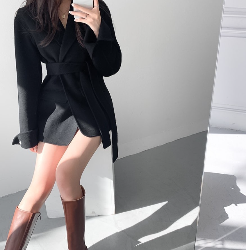 (●ˇ∀ˇ●)毛呢中長款外套無論咩身形都可以襯到❤️襯翻對長Boot就已經好好睇💕