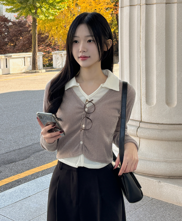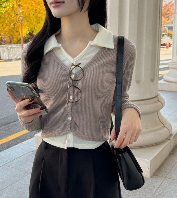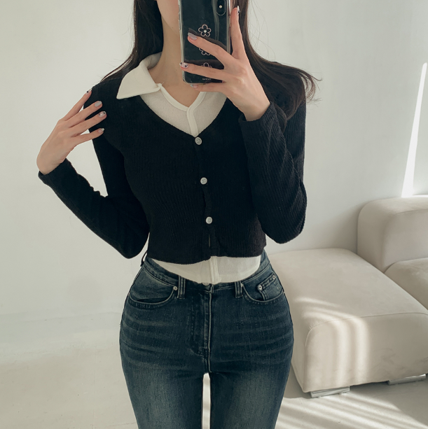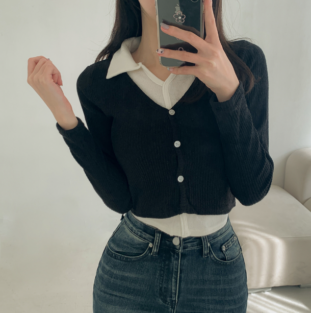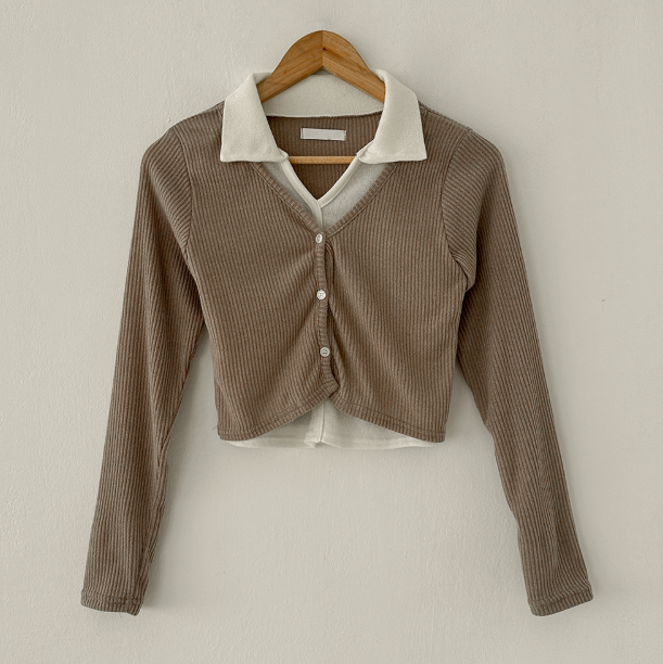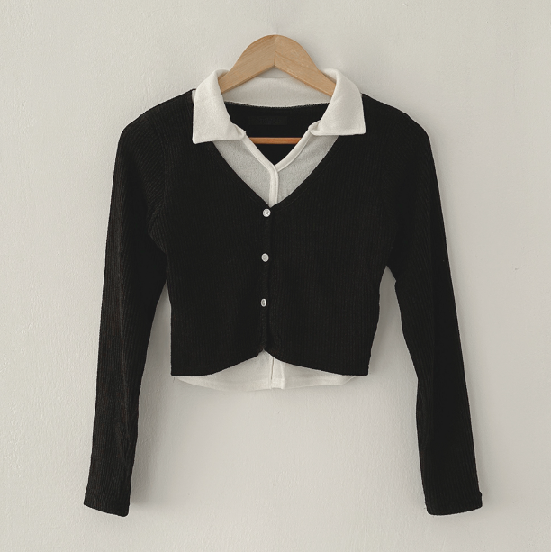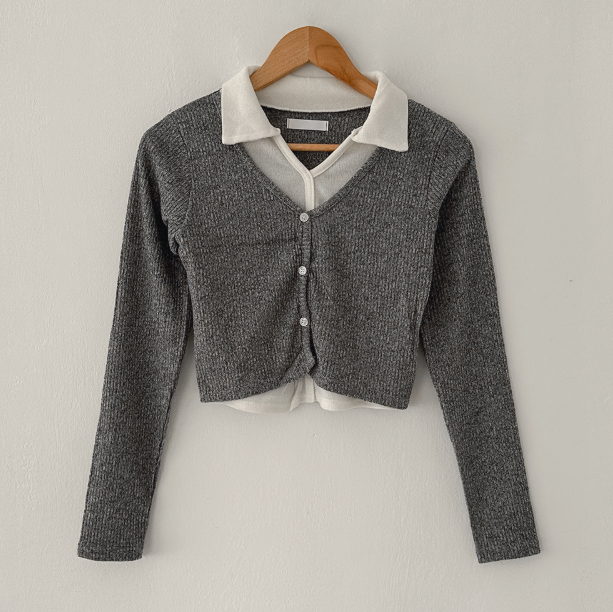 (•‾⌣‾•)反領假兩件長袖上衣❤️普通日常穿著好方便又有點特色💕