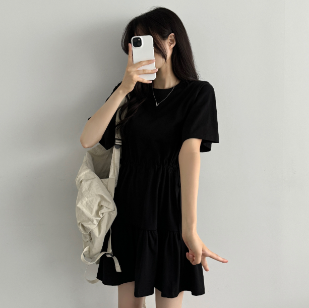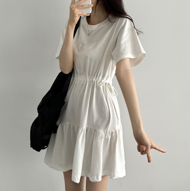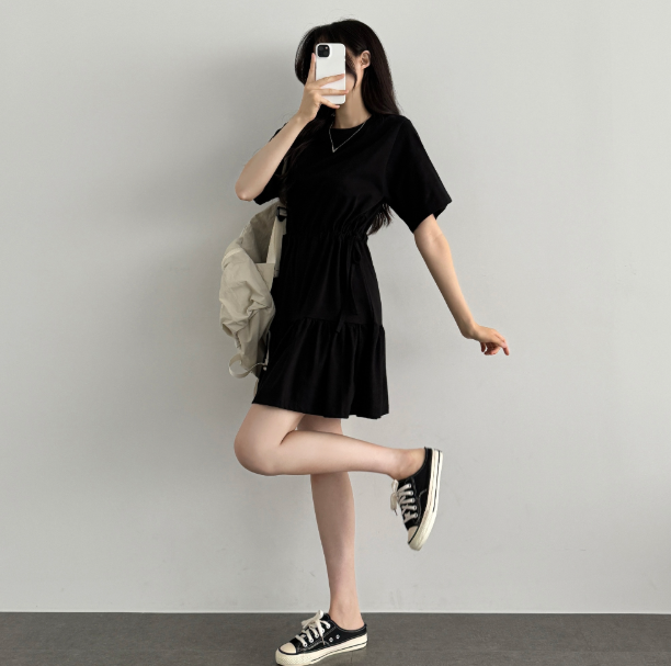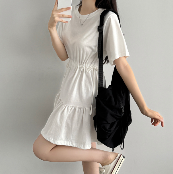 ₍˄·͈༝·͈˄₎◞︎ ̑̑簡單設計喇叭裙配上束繩可以顯出腰身更顯瘦💕