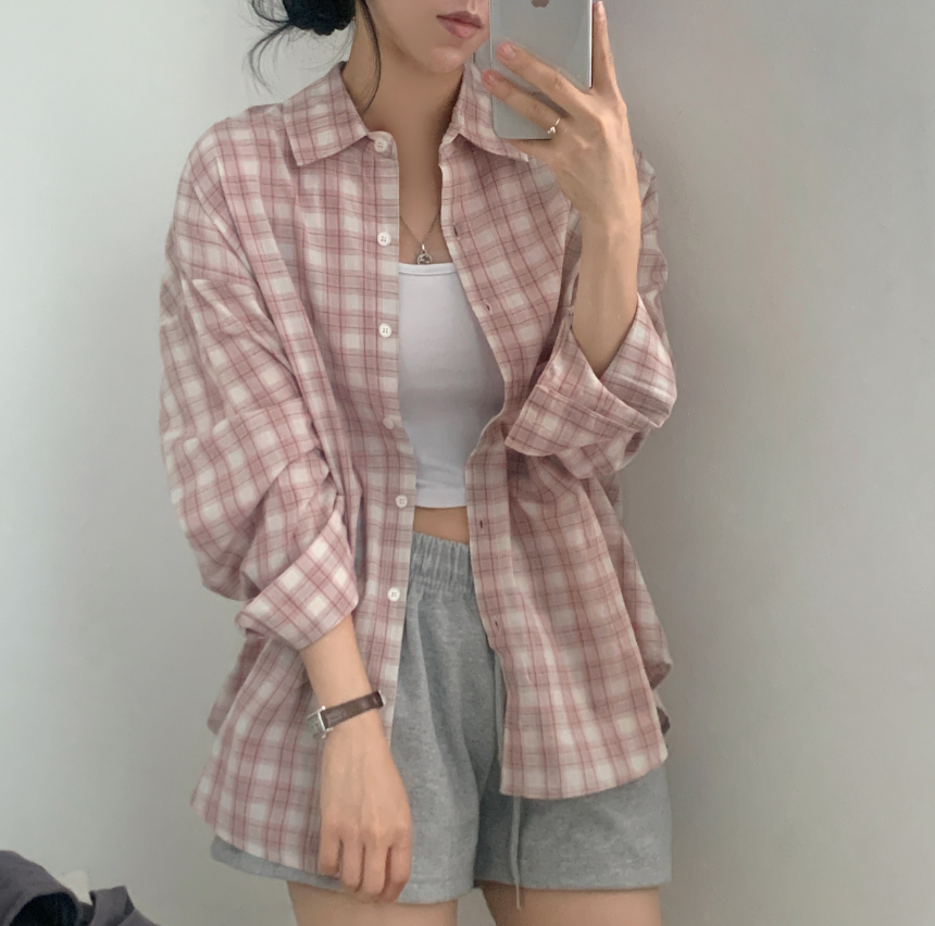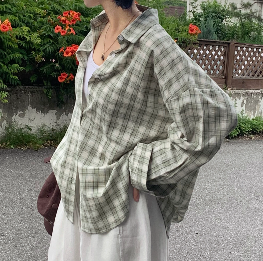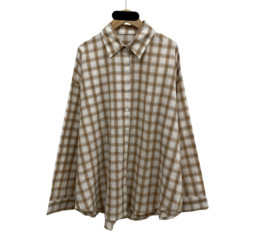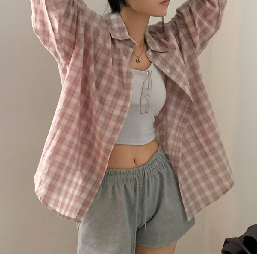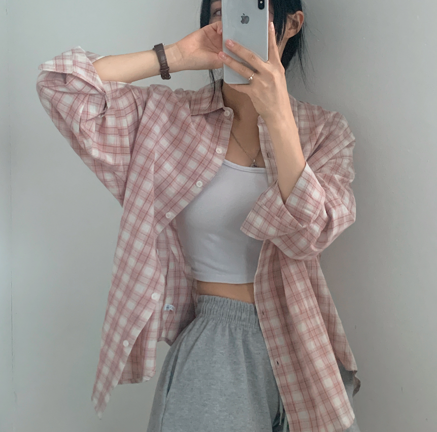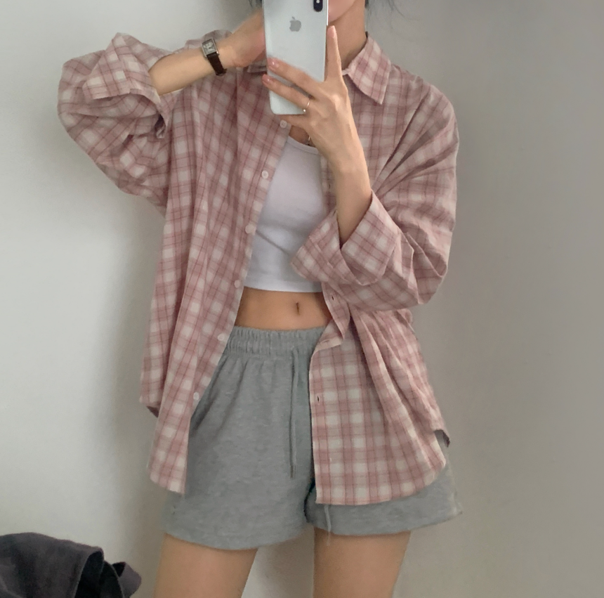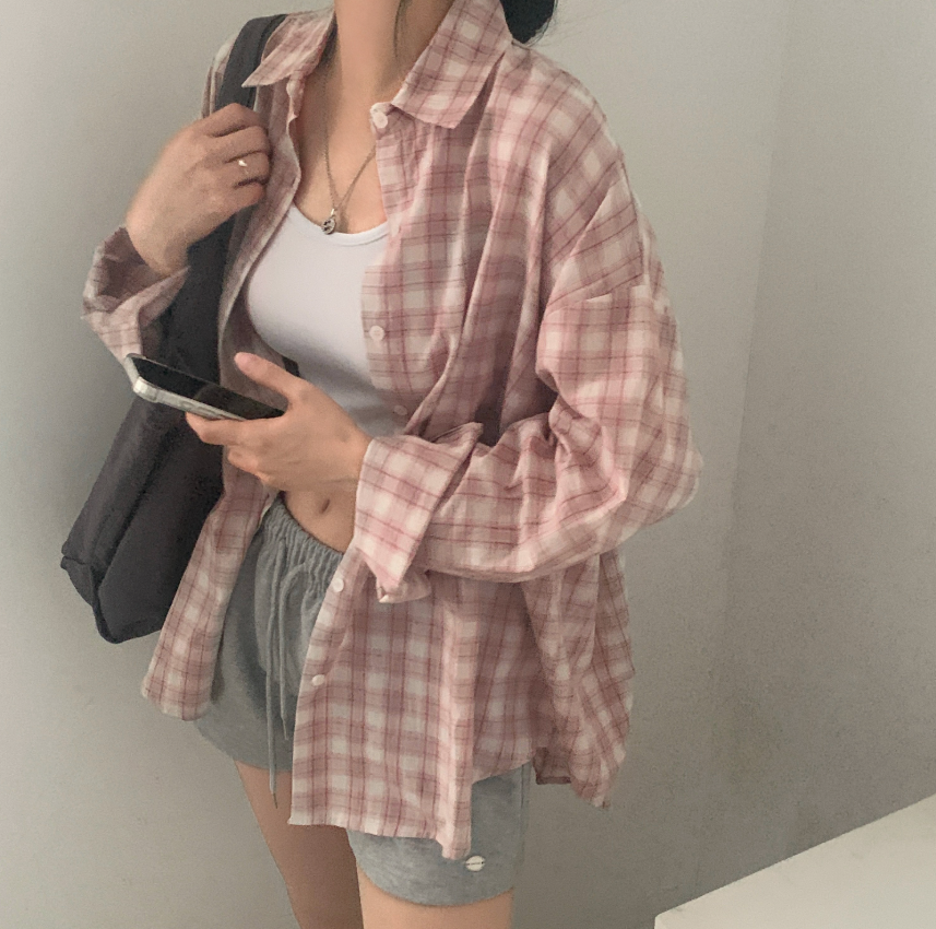 (•‾⌣‾•)寬鬆薄身格仔恤衫❤️可以當外套或者外搭襯衫有點日系文青既感覺💕