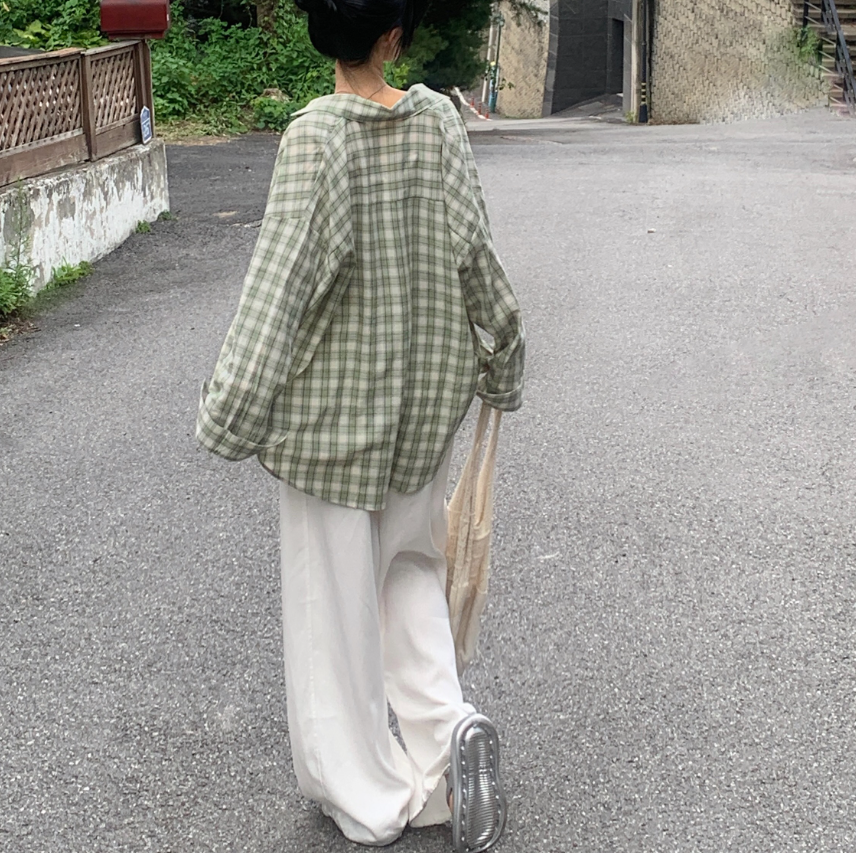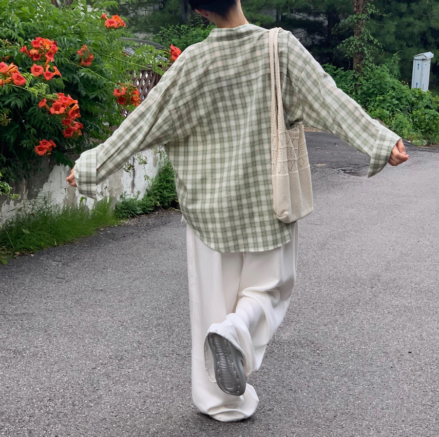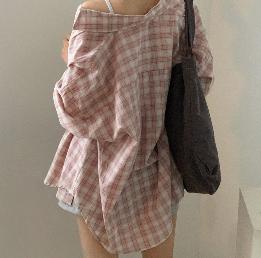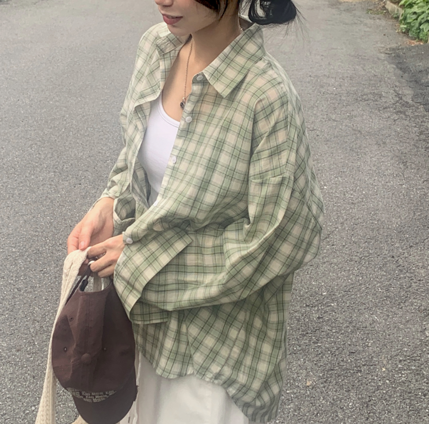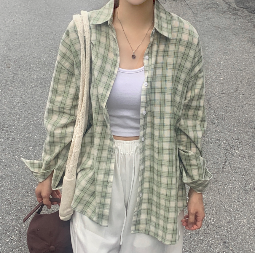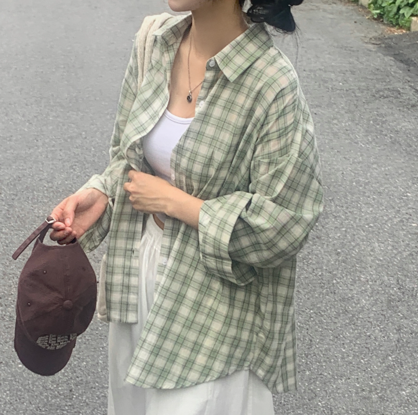 (•‾⌣‾•)寬鬆薄身格仔恤衫❤️可以當外套或者外搭襯衫有點日系文青既感覺💕