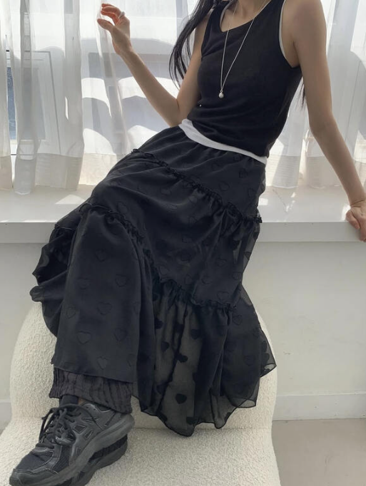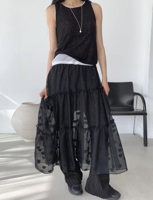 (•‾⌣‾•)心心透視長裙❤️比一般半身長裙添加左設計特色唔容易撞款💕