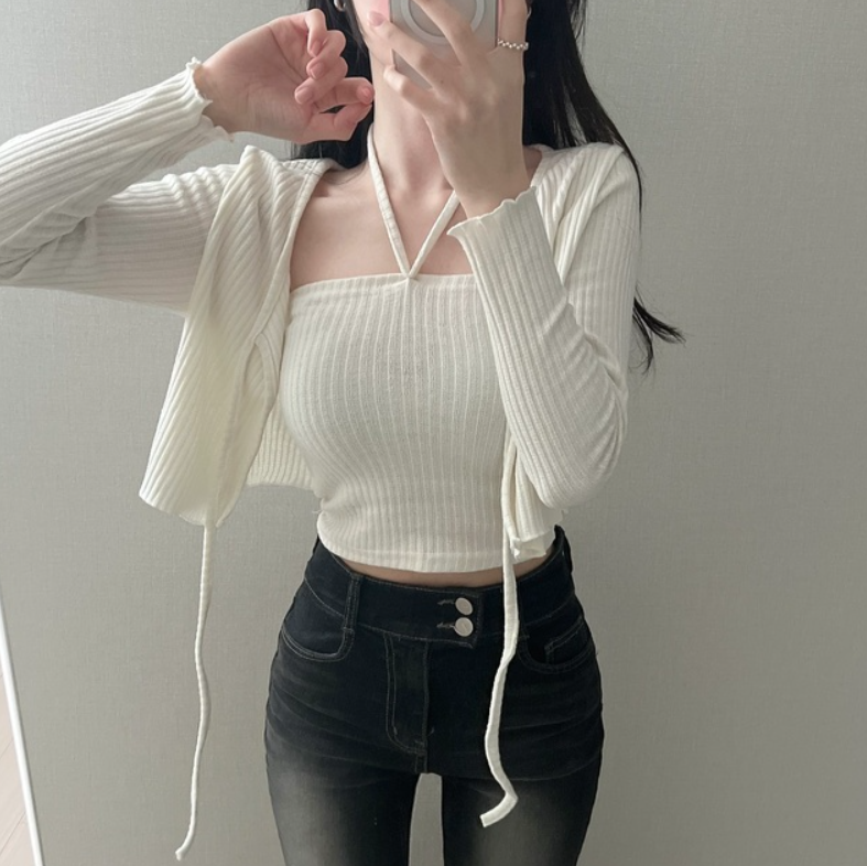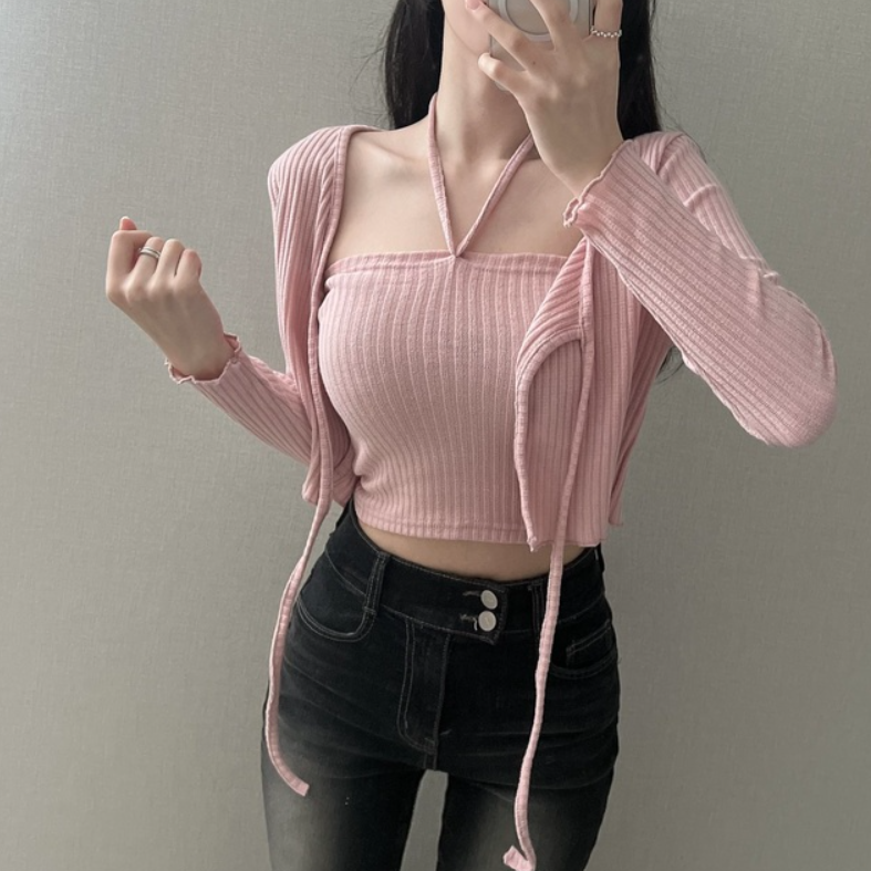 (•‾⌣‾•)簡約抹胸小套裝❤️日常穿搭必不可少💕