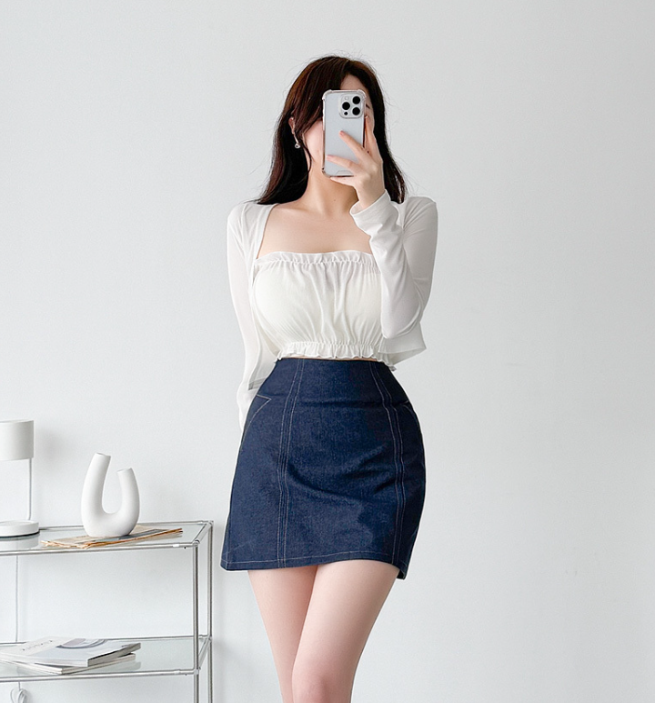 (•‾⌣‾•)抹胸搭小外套套裝❤️好適合夏天炎熱既天氣著有點小性感💕