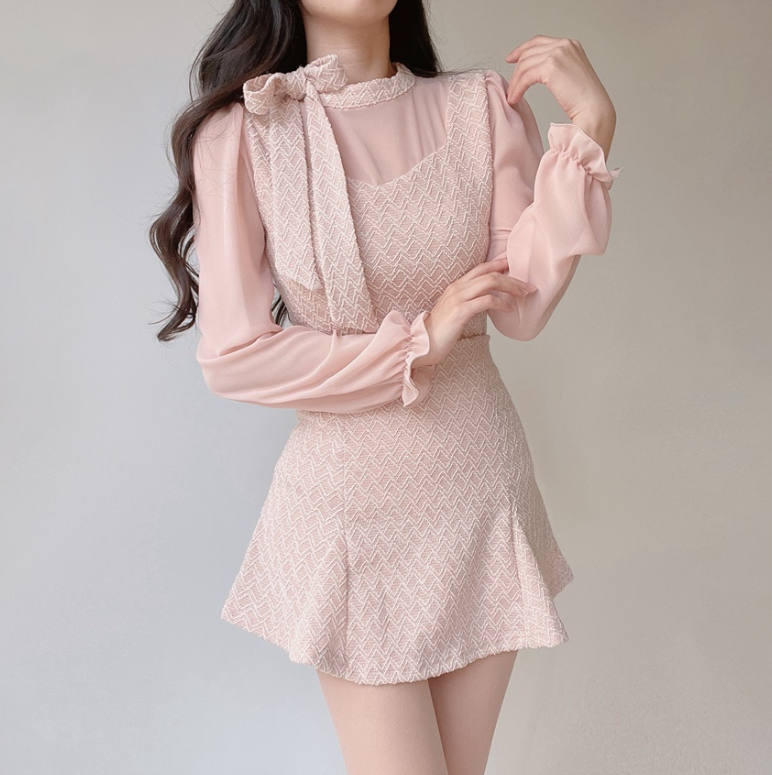 (●ˇ∀ˇ●)粉紅色配色好有少女心💕黑色低調又優雅套裝可以分開襯衫或者一套著好方便❤️