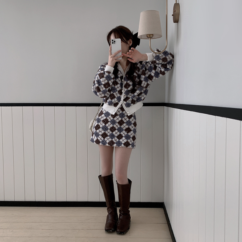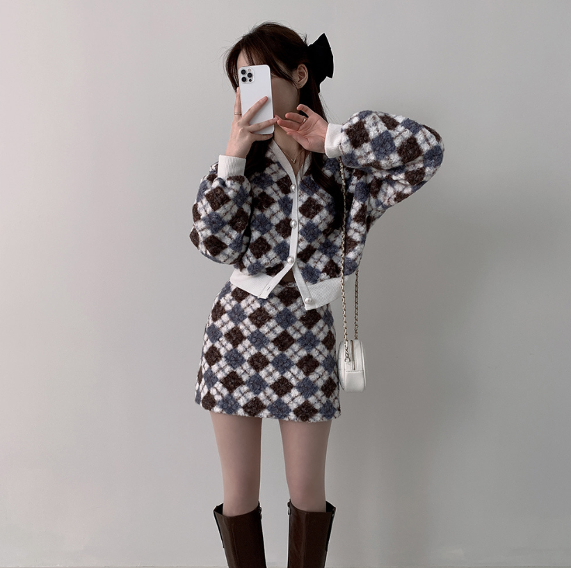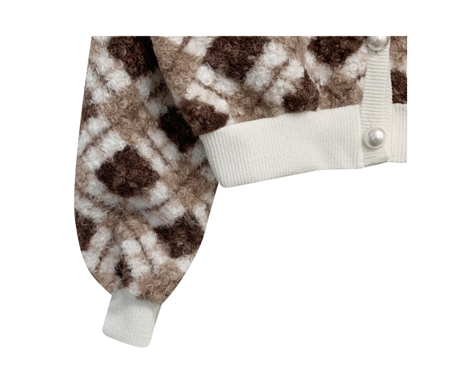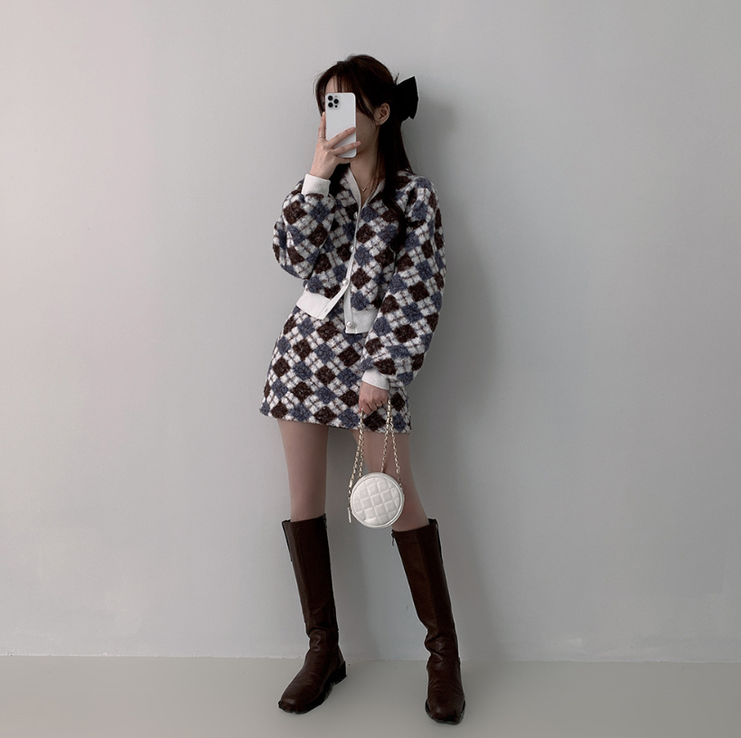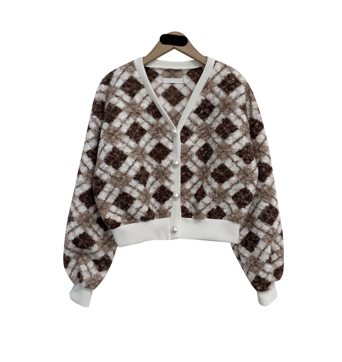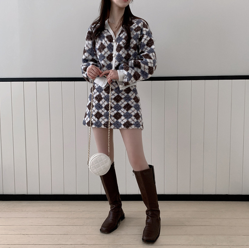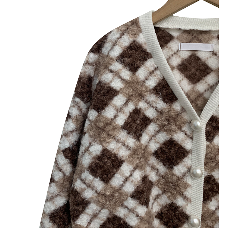 (´◔ ₃ ◔`)菱形格仔好有特色加上捲毛毛質地可愛又溫柔❤️