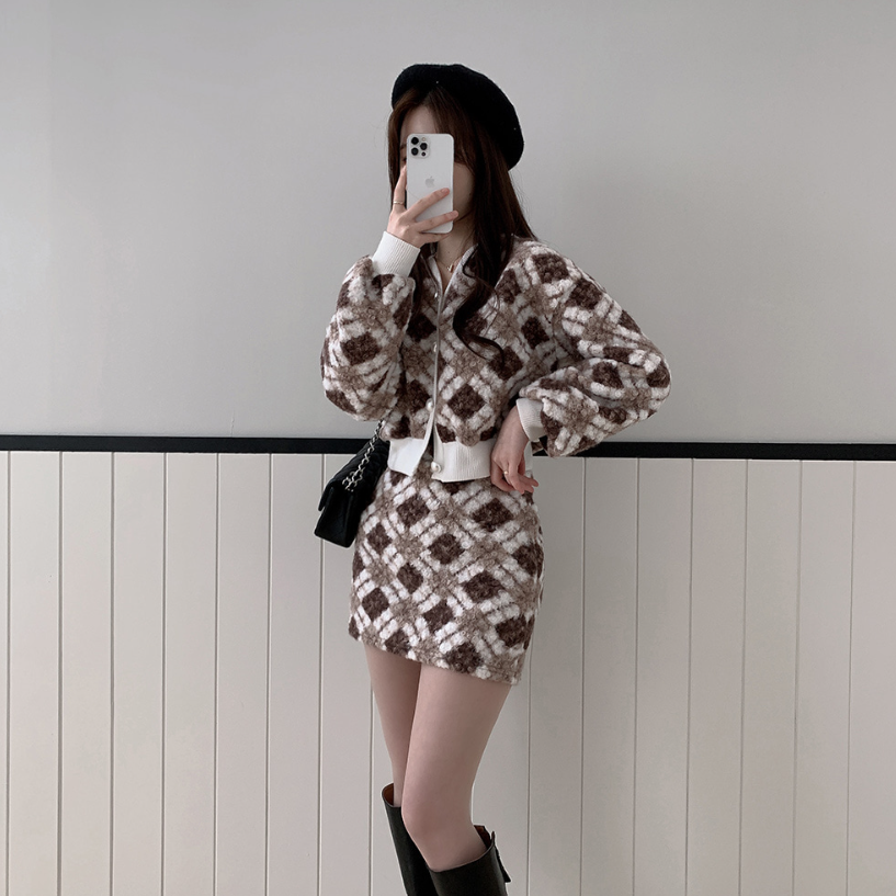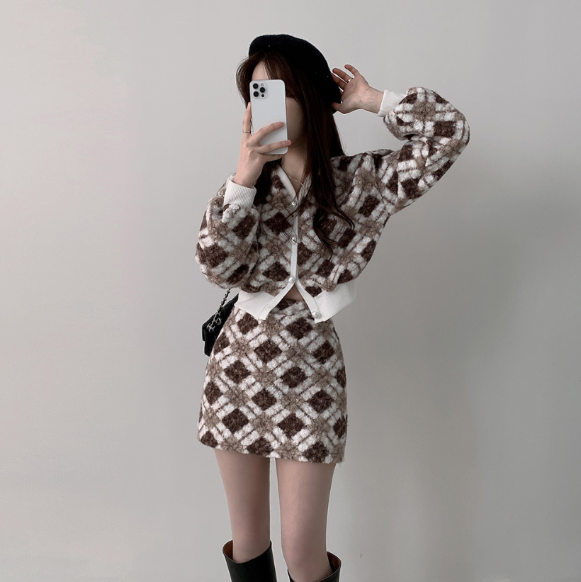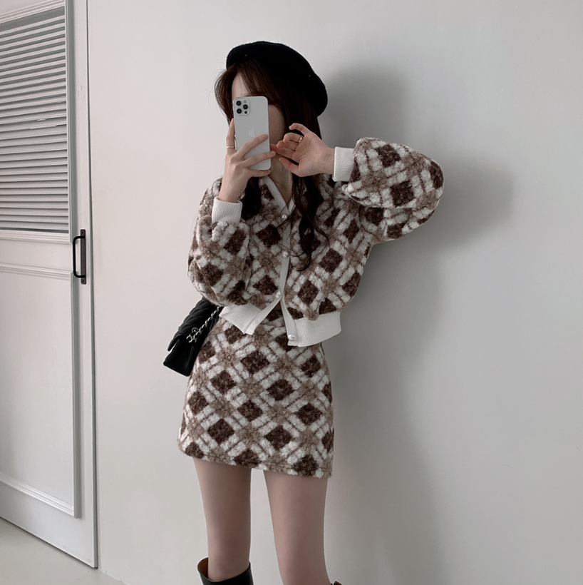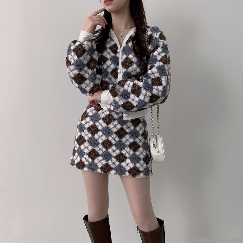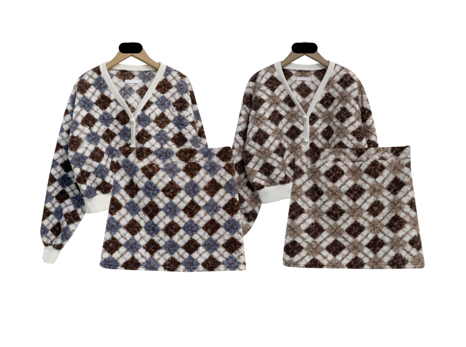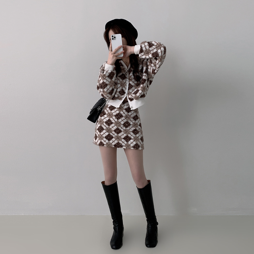 (´◔ ₃ ◔`)菱形格仔好有特色加上捲毛毛質地可愛又溫柔❤️