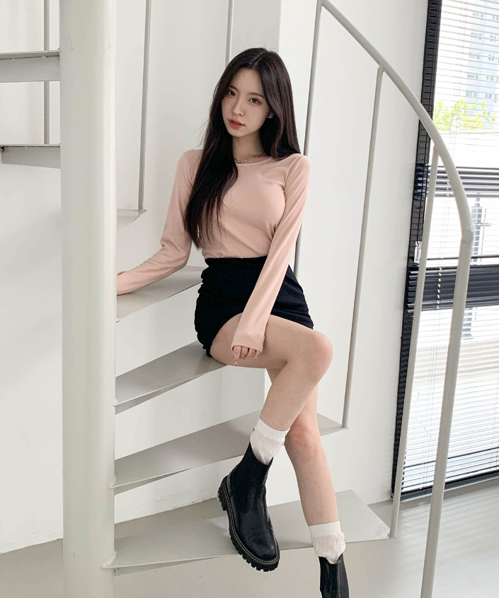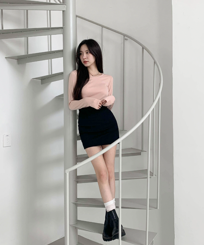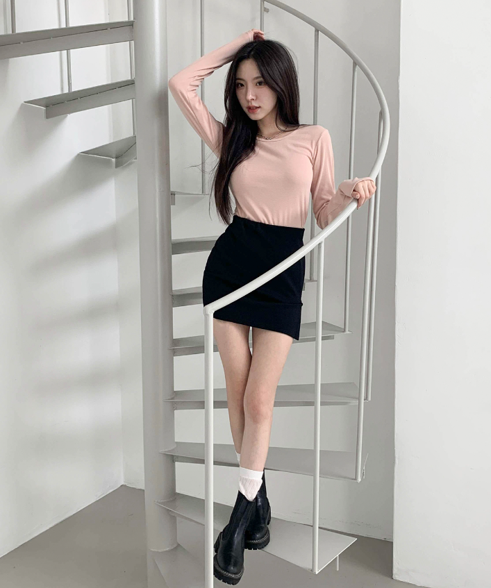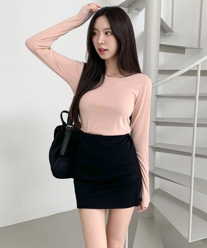 (•‾⌣‾•)素色開衩包臀裙💕休閒風格上衣簡單T恤就可以出街❤️