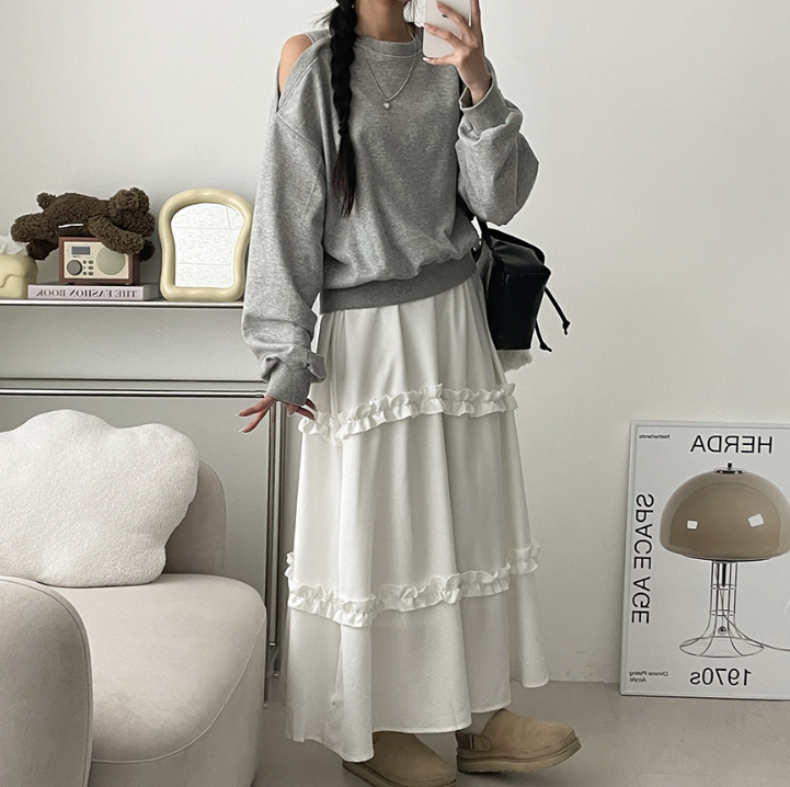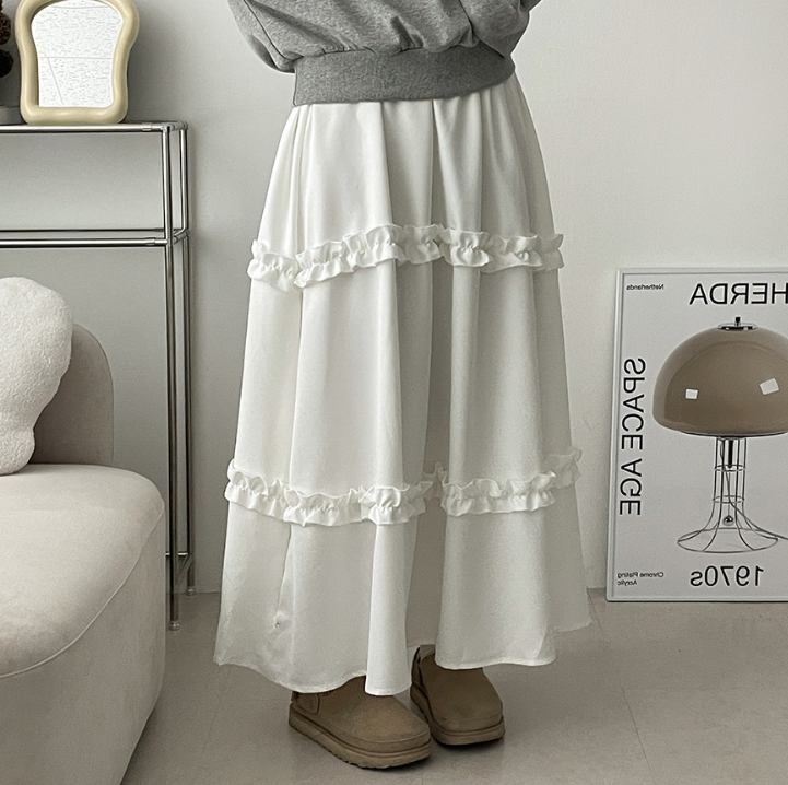 (●ˇ∀ˇ●)適合四季穿著既橡筋腰長裙❤️有點花邊點綴簡約又好睇💕