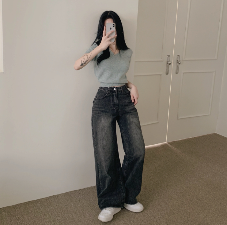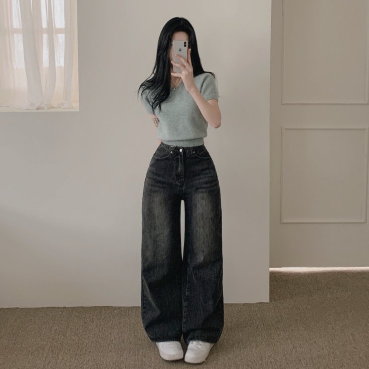 (•‾⌣‾•)直筒牛仔褲可以修飾腳型遮蓋所有缺點💕而且有分長款短款適合小個子同高個子❤️
