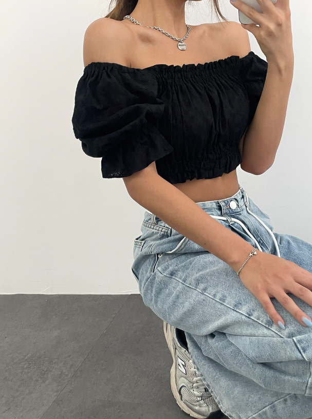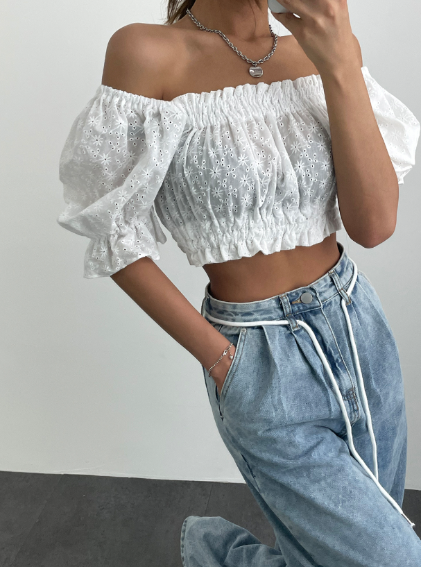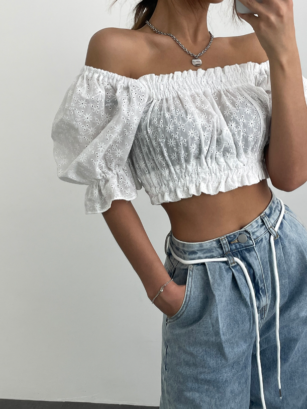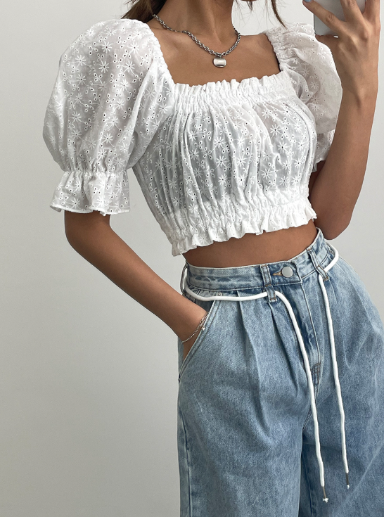 (•‾⌣‾•)鏤空暗花設計帶點蕾絲既感覺💕短款設計盡顯身材❤️