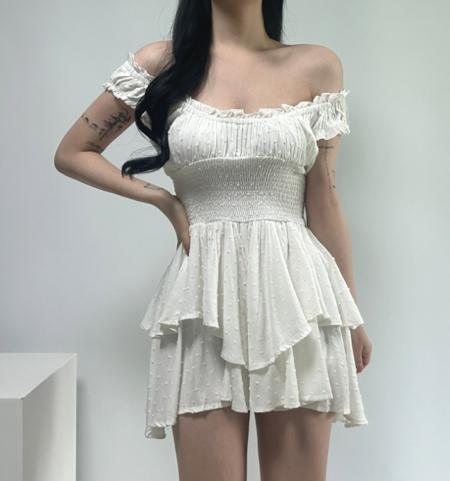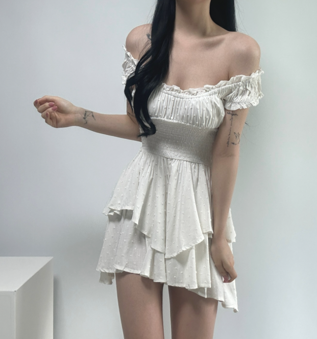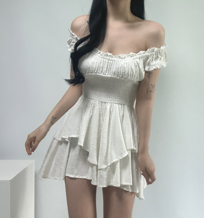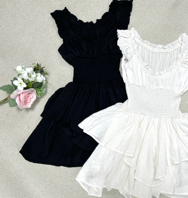 ₍˄·͈༝·͈˄₎◞︎ ̑̑可吊帶可一字肩既連身裙💕波波點設計可愛又小清新❤️