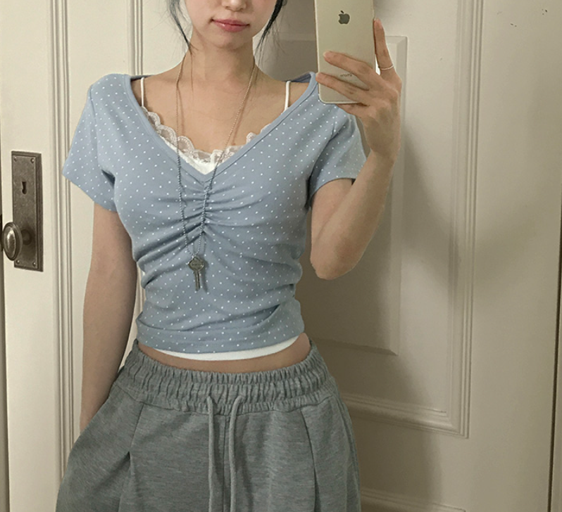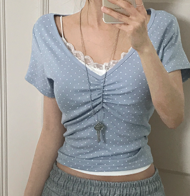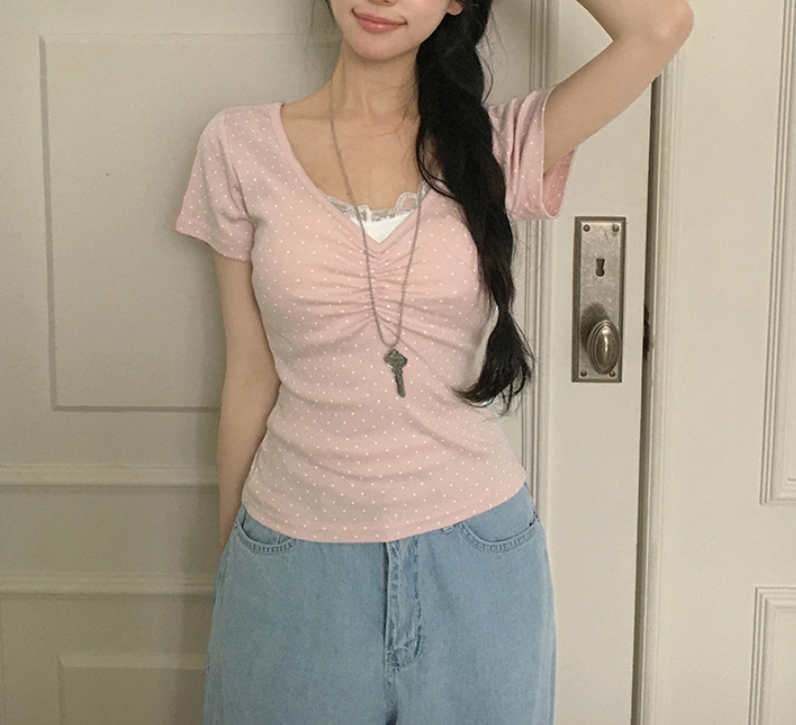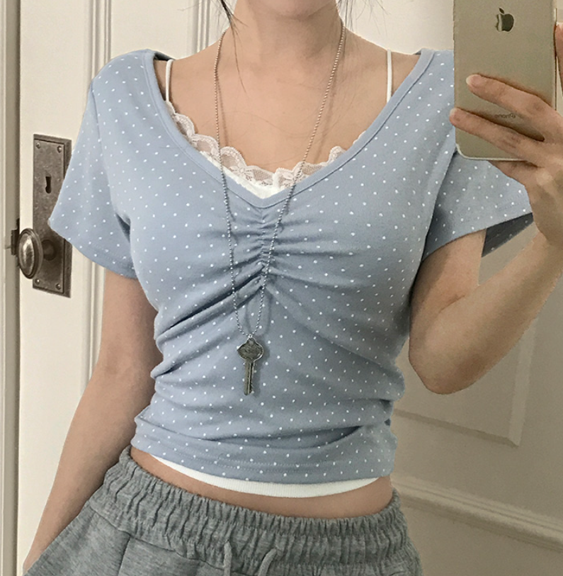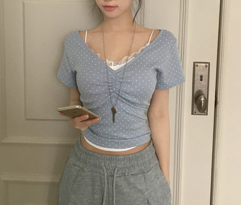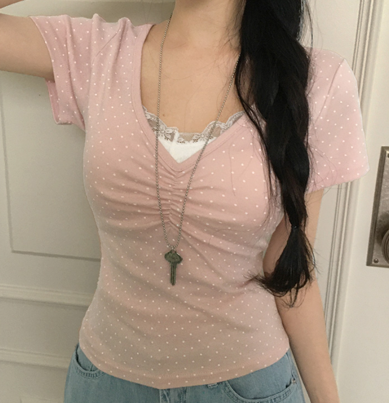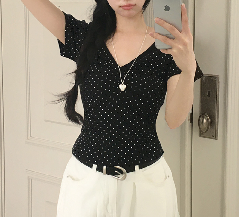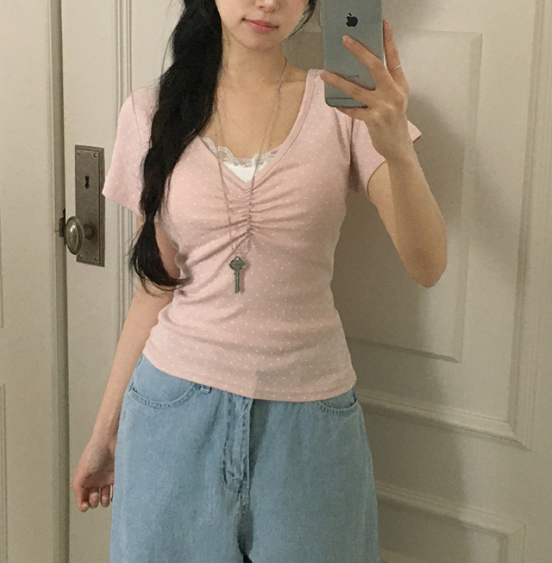 (•‾⌣‾•)V領波點T恤❤️可以自行內搭小背心疊穿增加視覺效果💕
