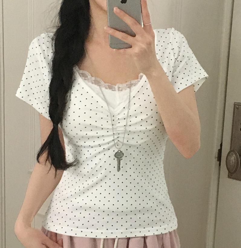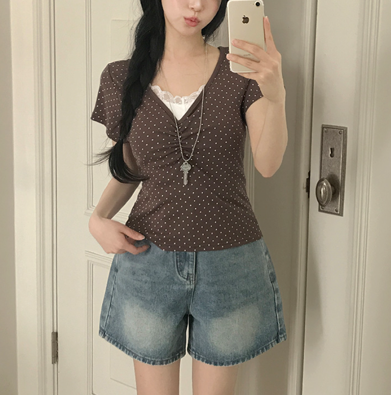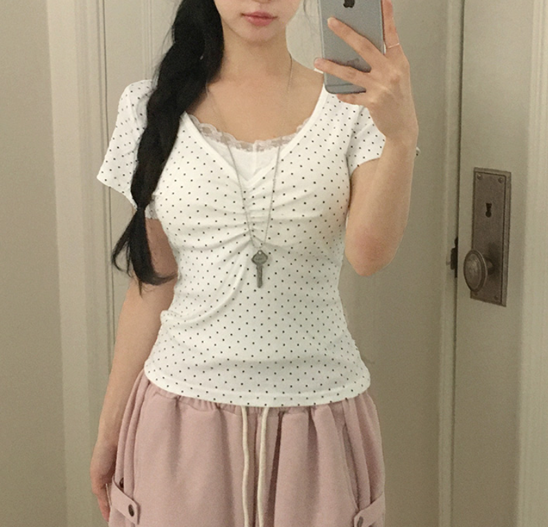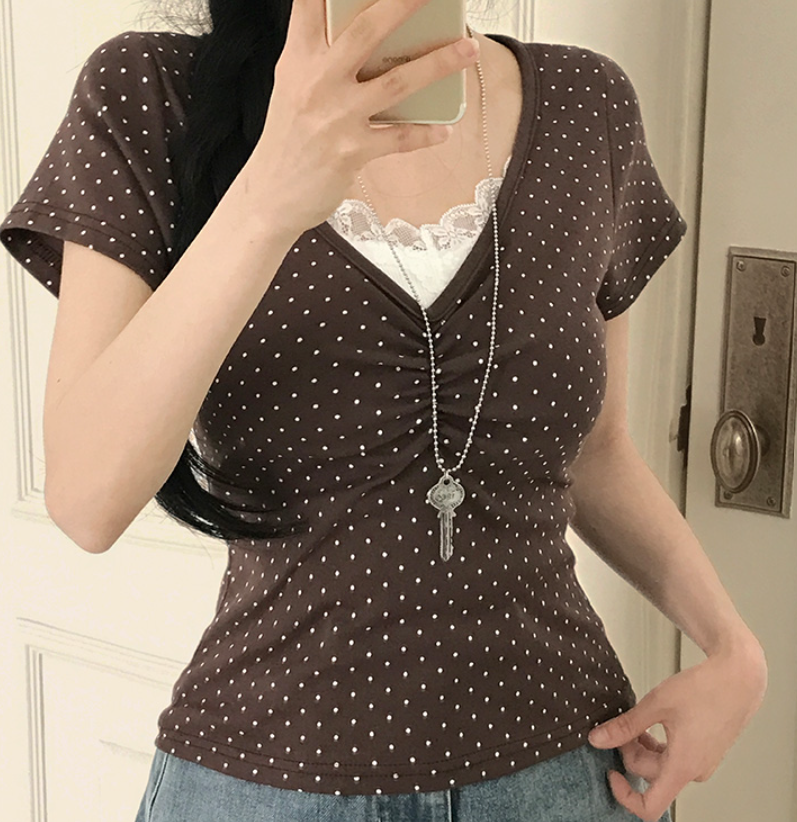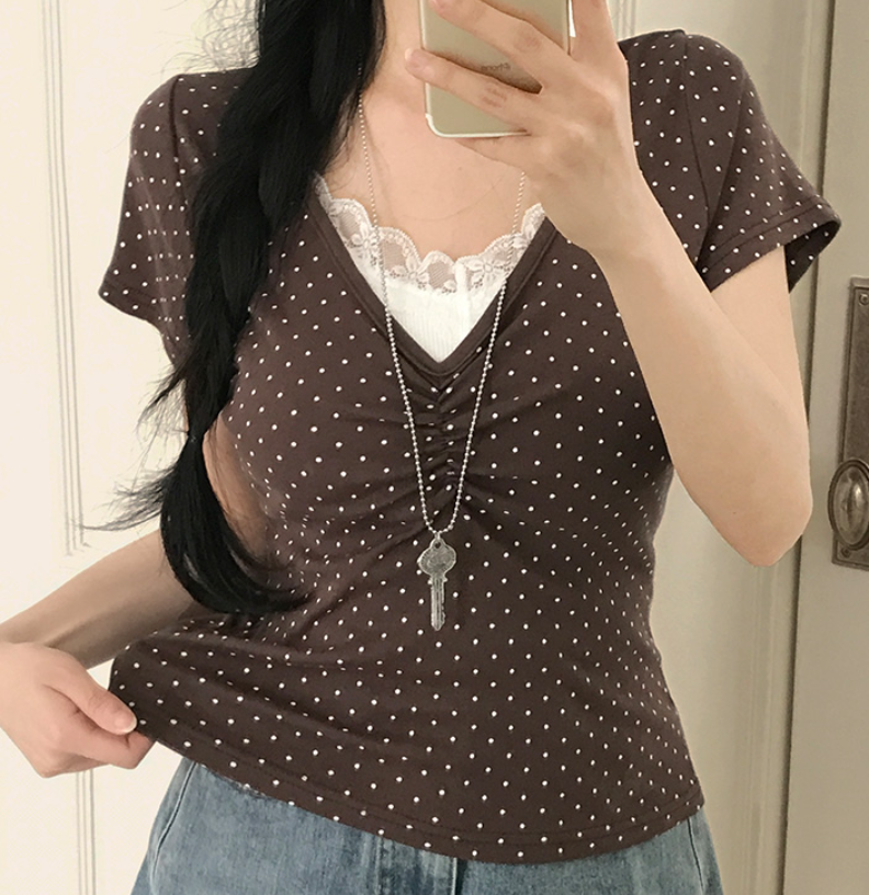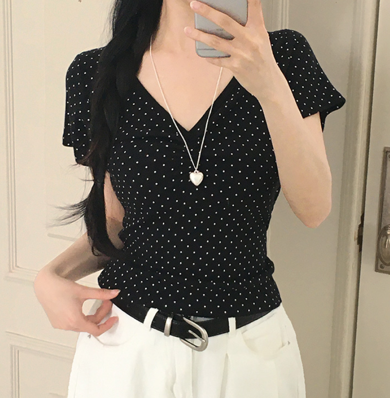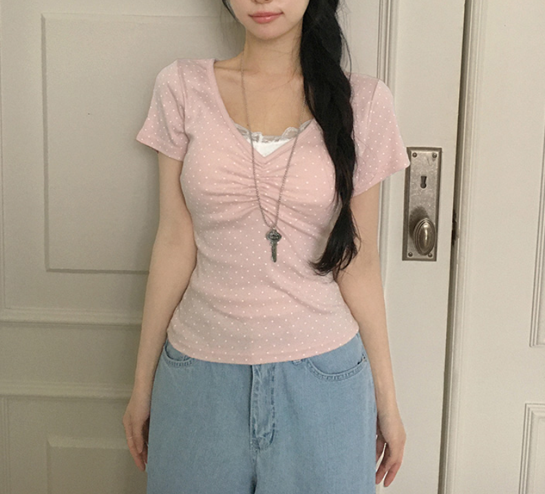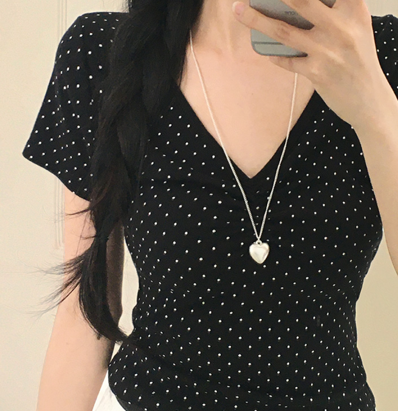 (•‾⌣‾•)V領波點T恤❤️可以自行內搭小背心疊穿增加視覺效果💕