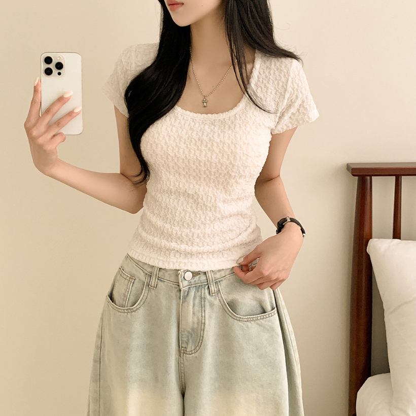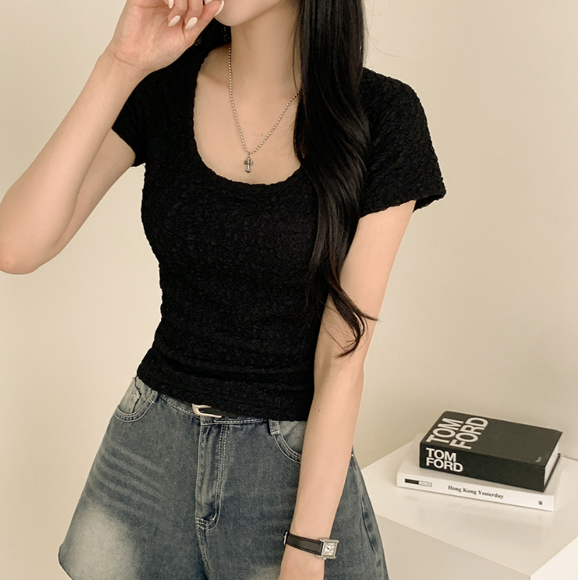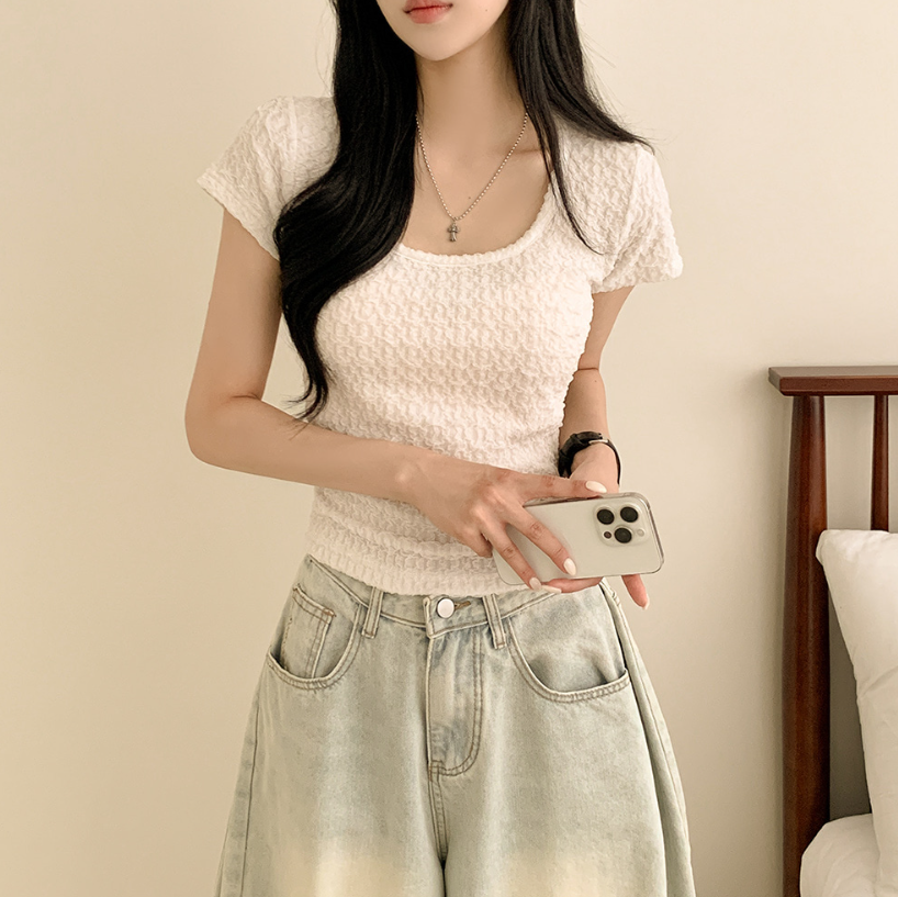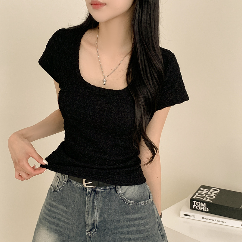 (•‾⌣‾•)百搭既短袖T恤❤️皺褶設計添加左小心思唔容易撞款💕