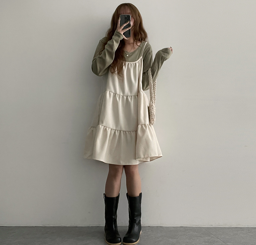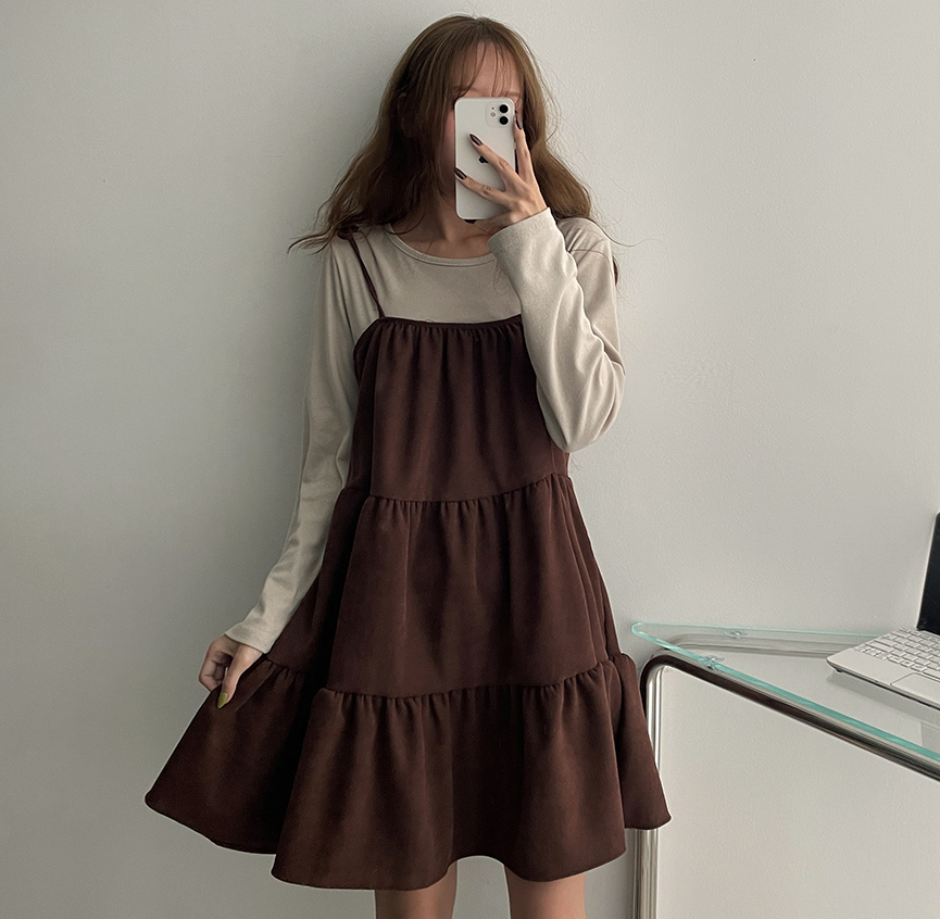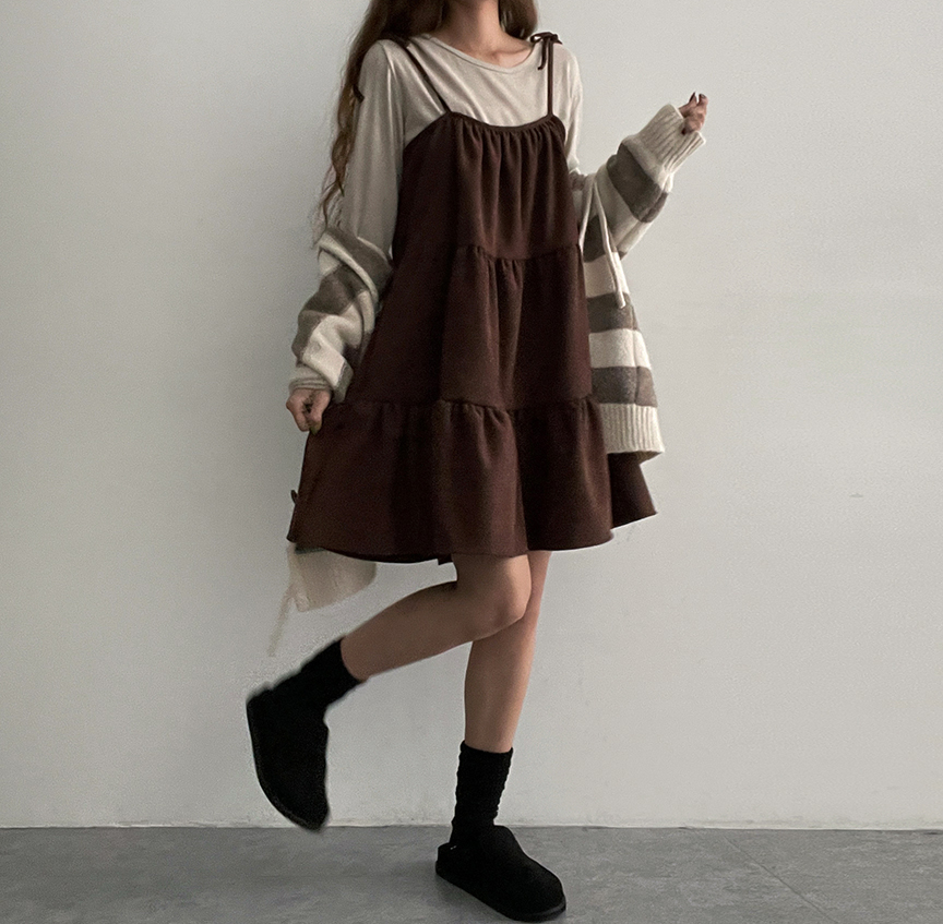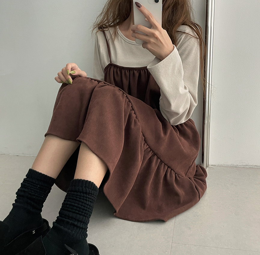 ₍˄·͈༝·͈˄₎◞︎ ̑̑絨面質地好適合秋冬天氣💕呢款連身裙加普通長袖內搭就好好睇好方便❤️