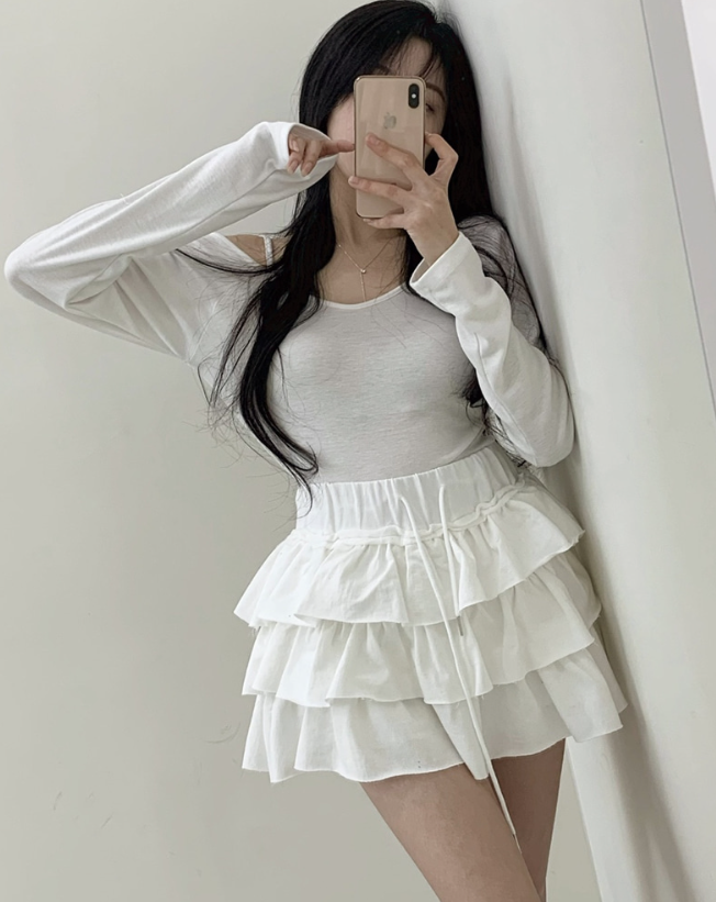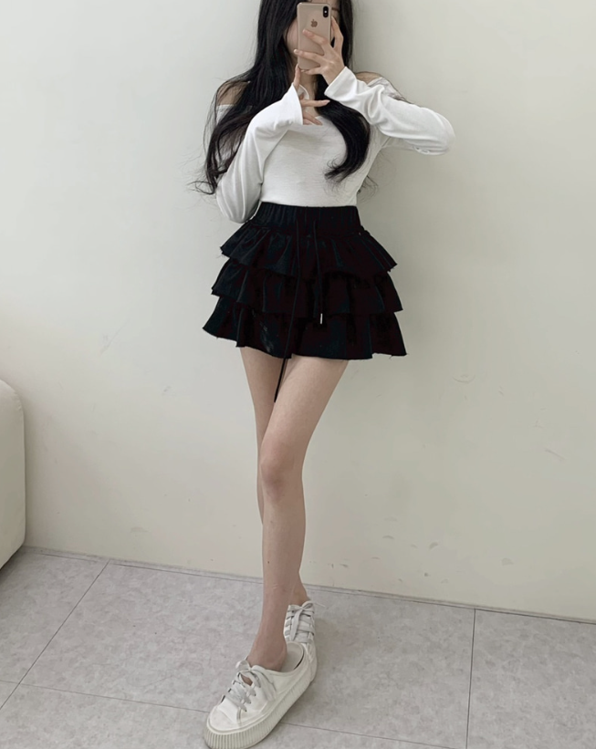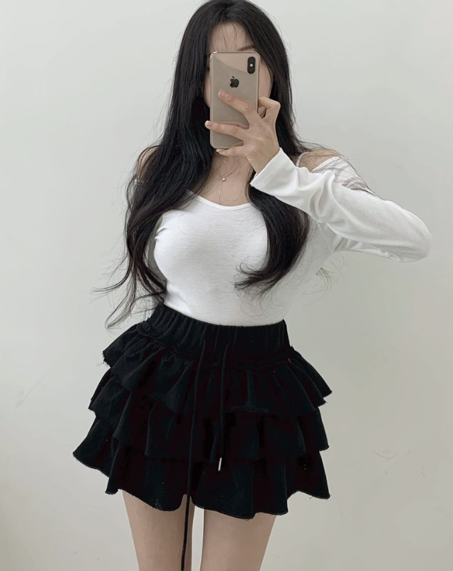 (•‾⌣‾•)橡筋腰荷葉邊蛋糕裙💕富有彈性休閒百搭點襯都得❤️