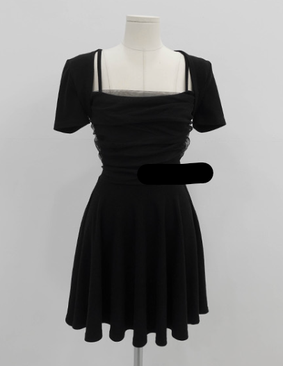 薄紗假兩件喇叭裙