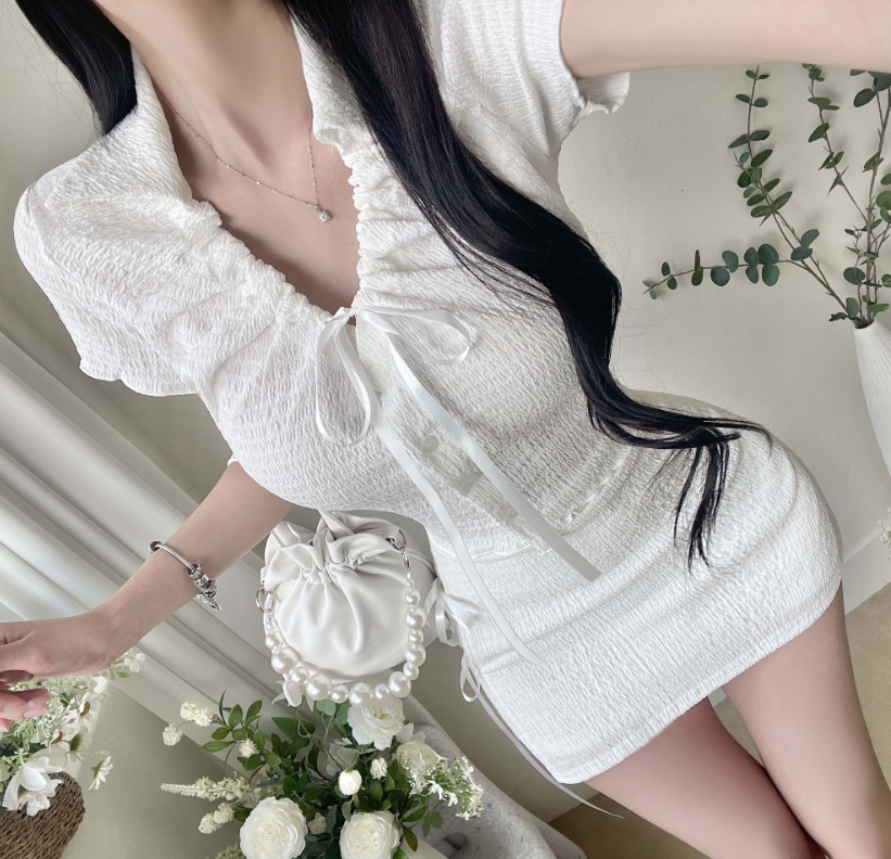 (•‾⌣‾•)皺皺設計唔會太悶💕領位有束繩可綁蝴蝶結溫柔又好睇❤️