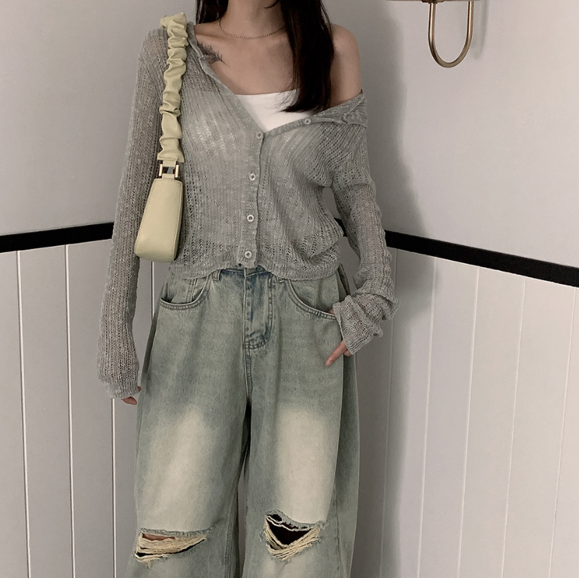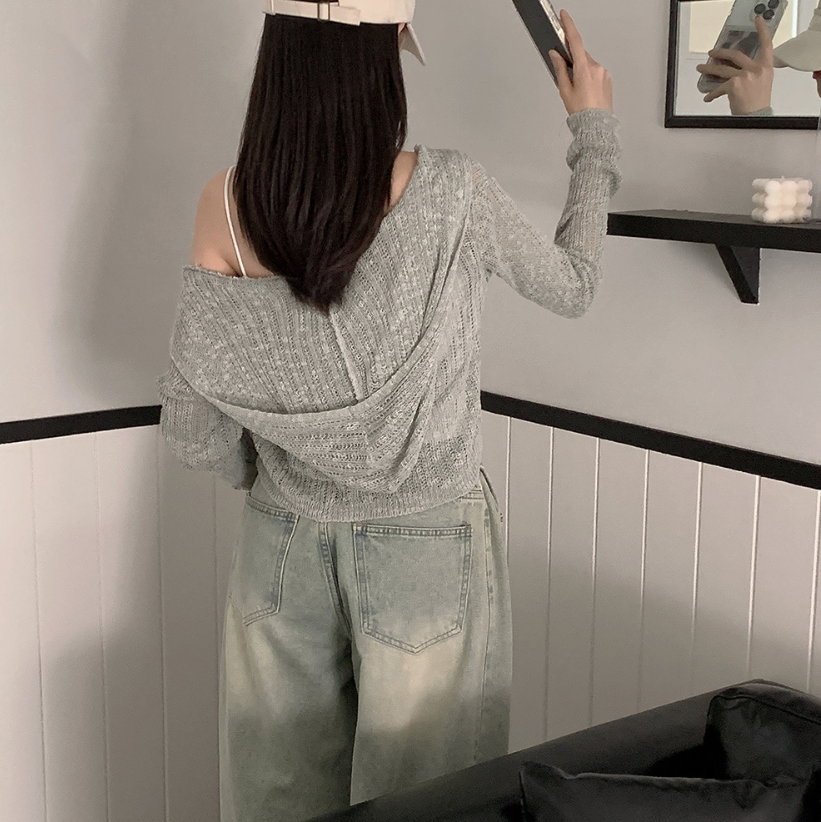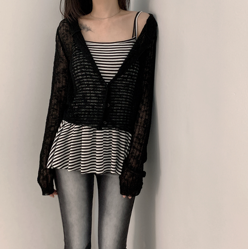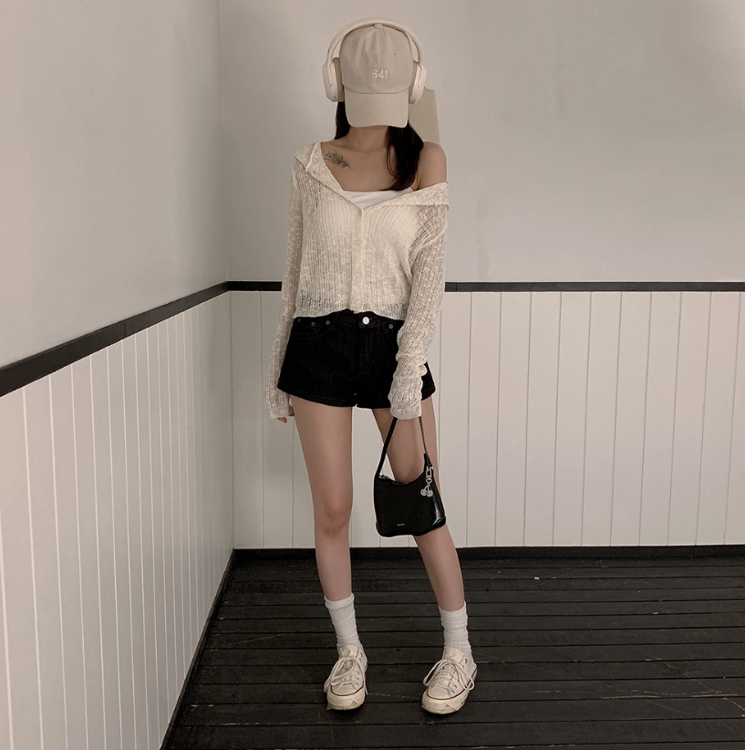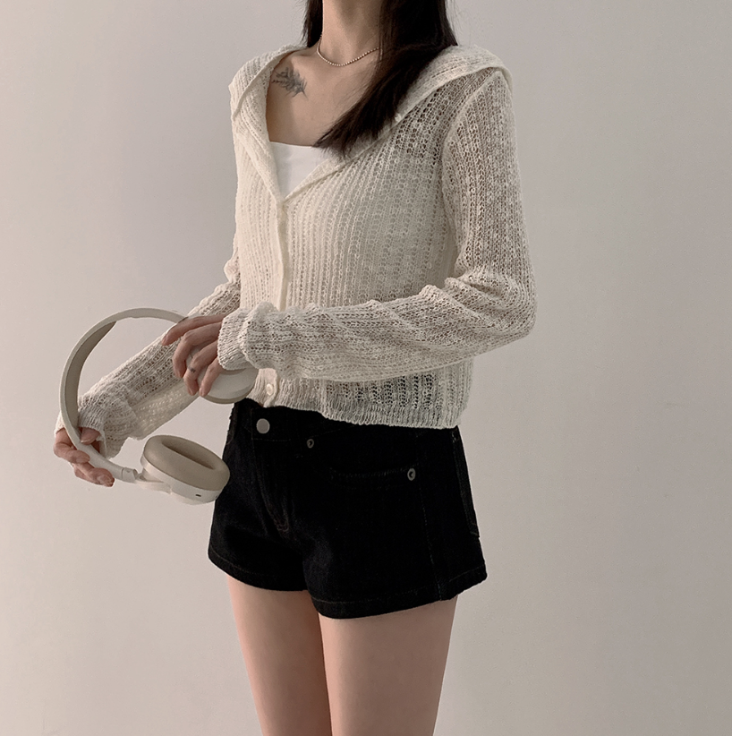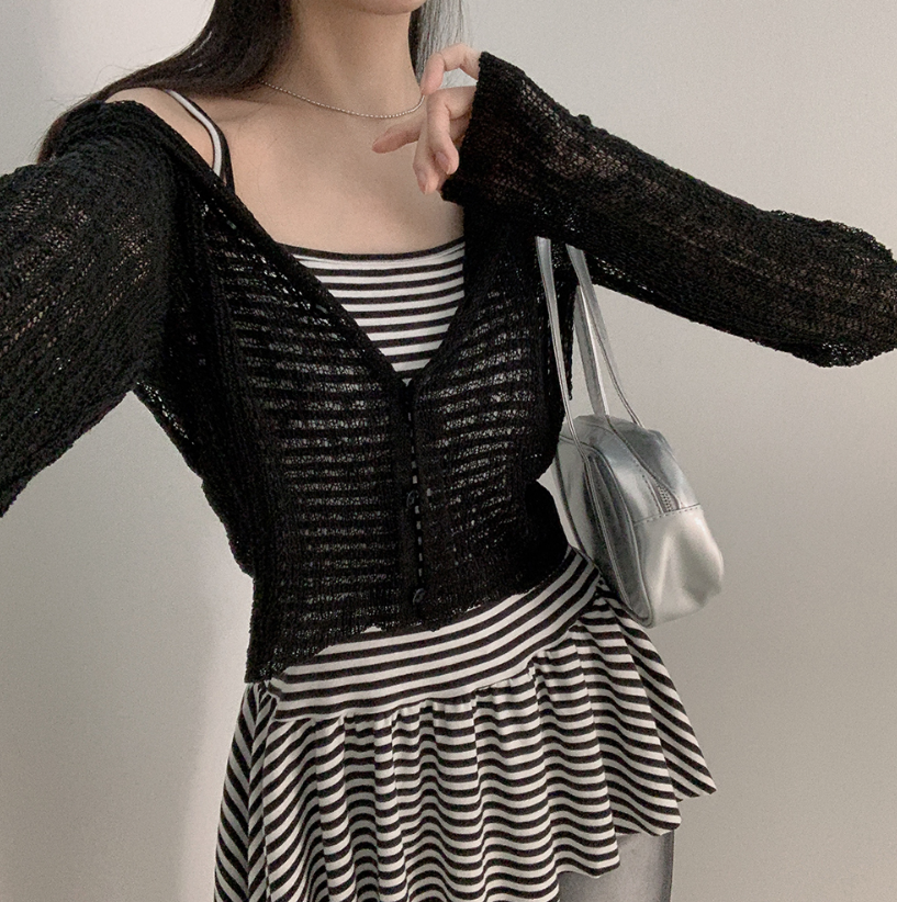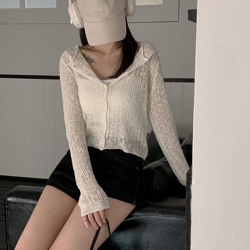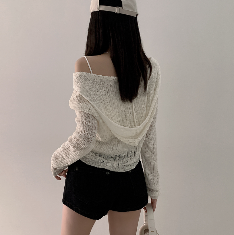 (•‾⌣‾•)透薄連帽針織外套❤️出街可以遮一遮手臂肉肉出入冷氣地方都好方便💕