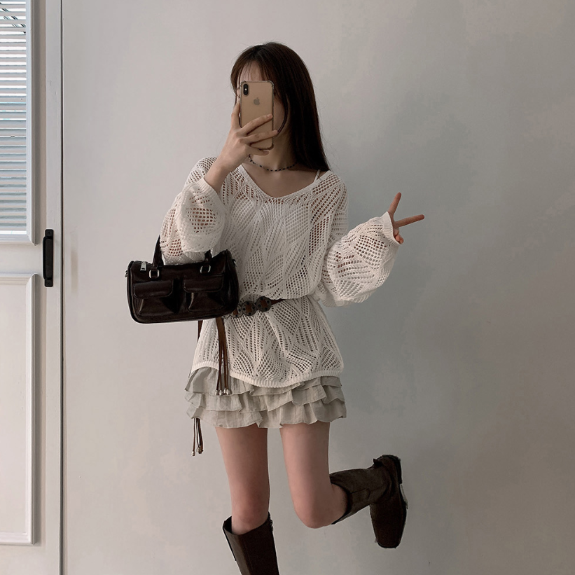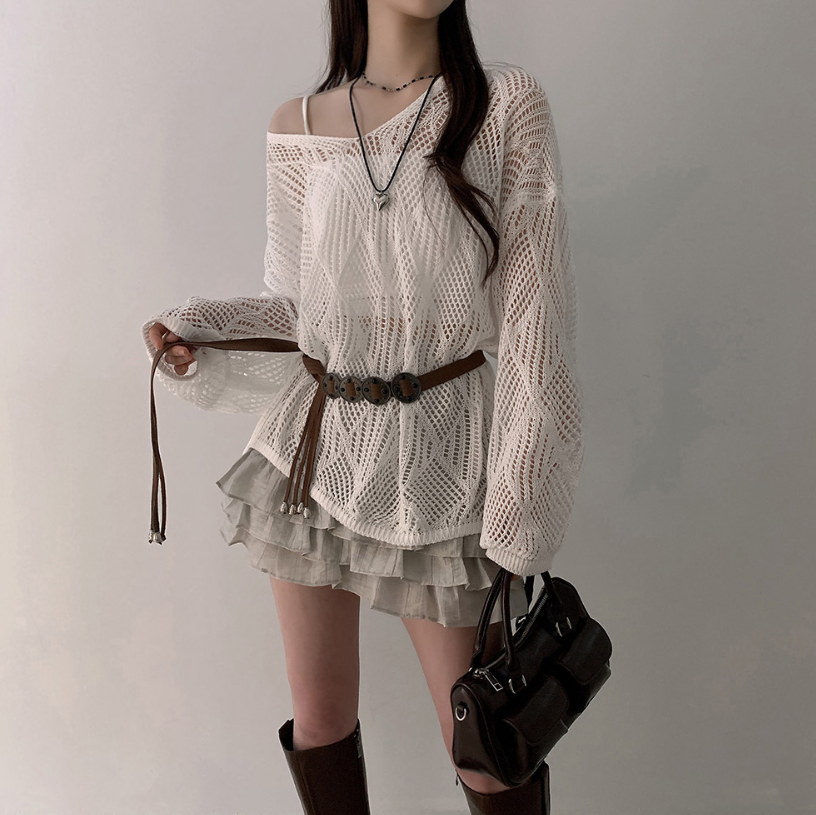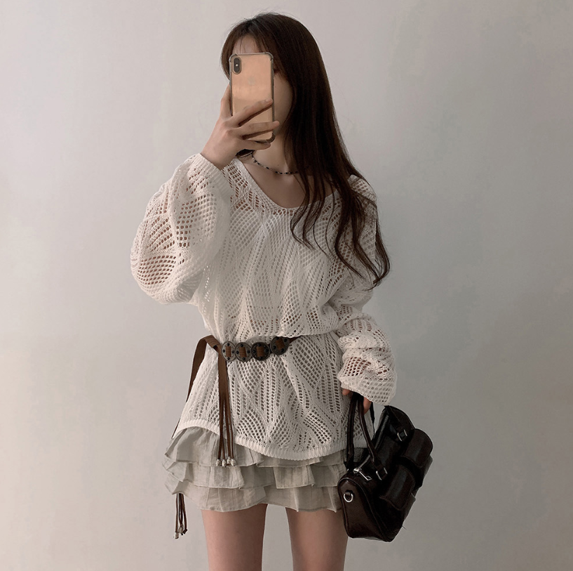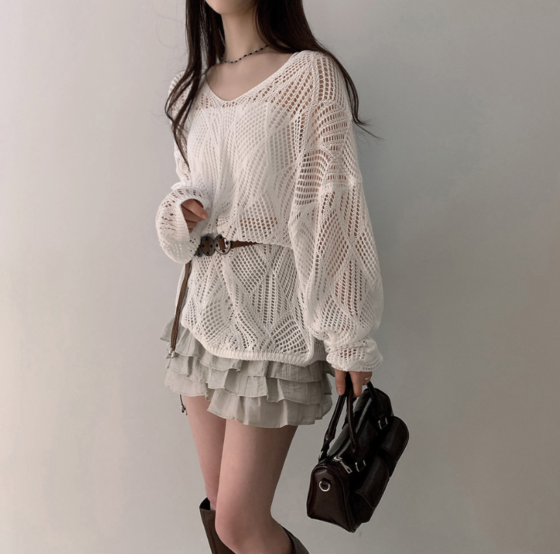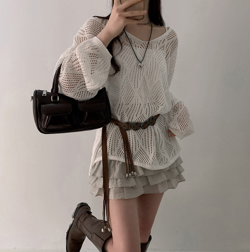 (●ˇ∀ˇ●)鏤空針織衫配搭有層次既疊穿方式若隱若現💕帶有小性感既感覺❤️