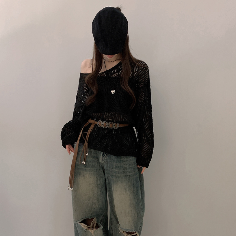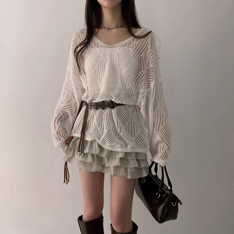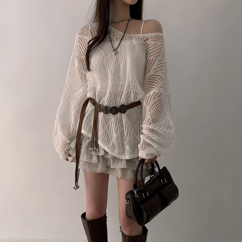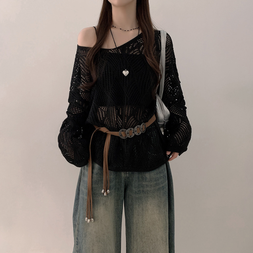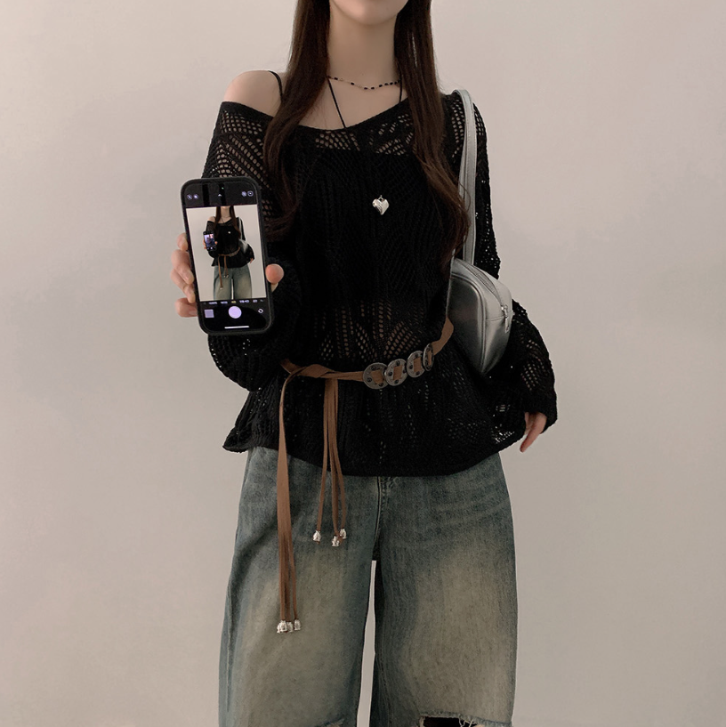 (●ˇ∀ˇ●)鏤空針織衫配搭有層次既疊穿方式若隱若現💕帶有小性感既感覺❤️