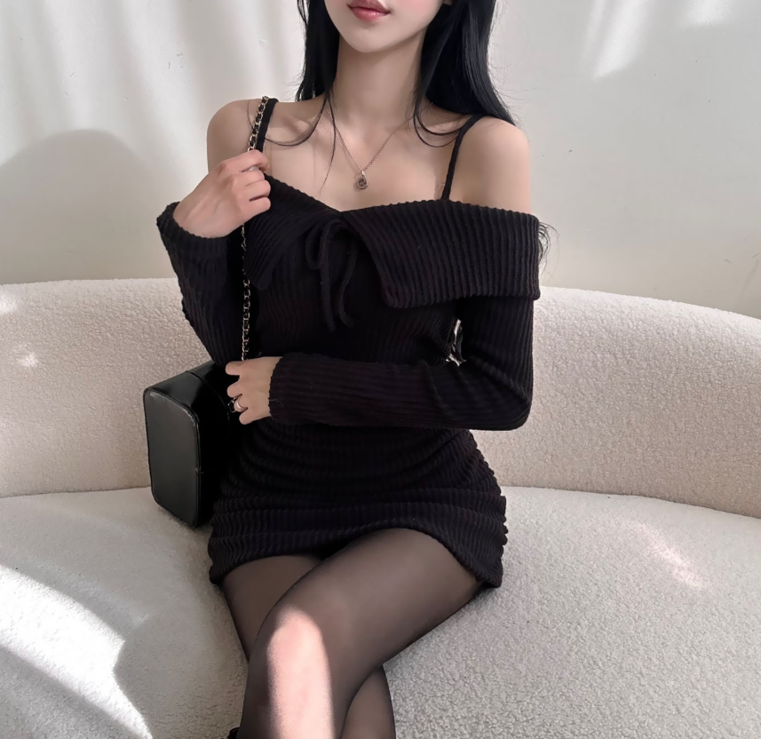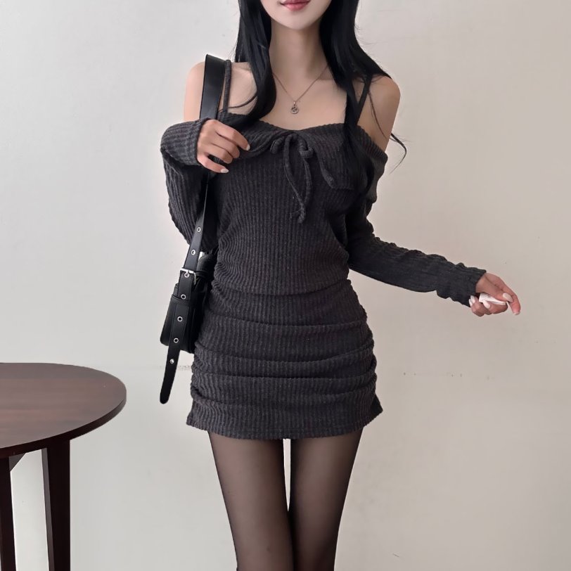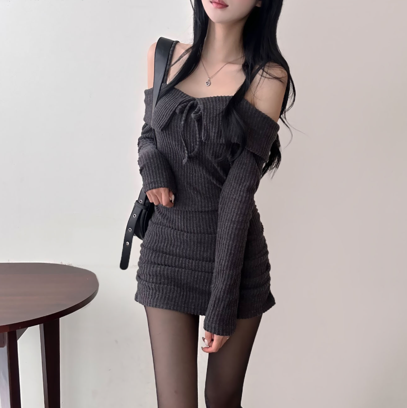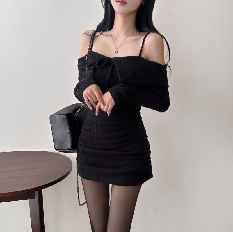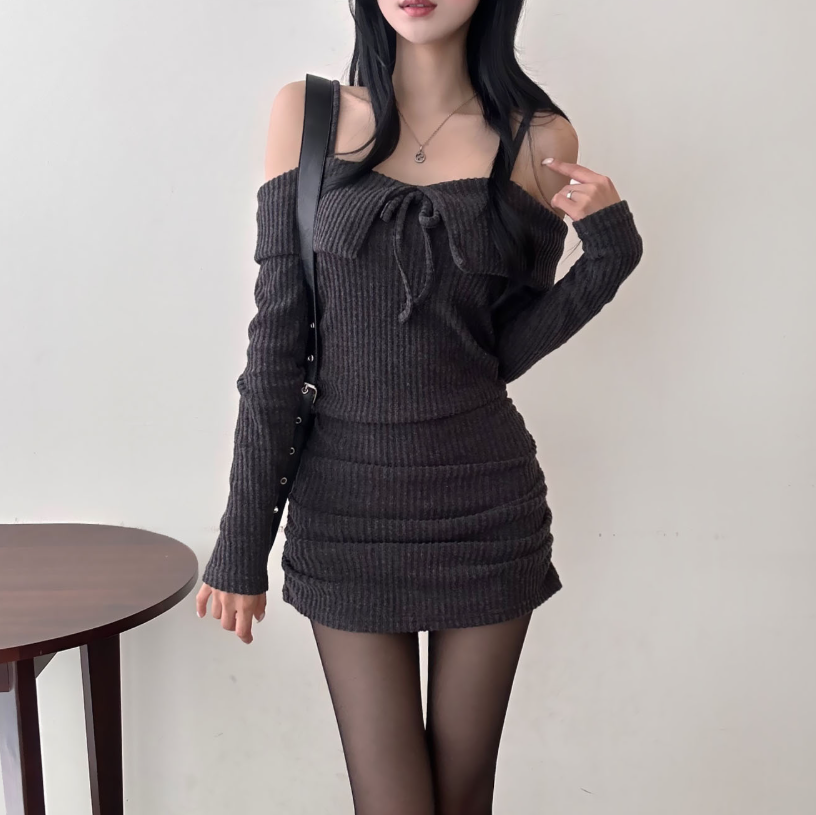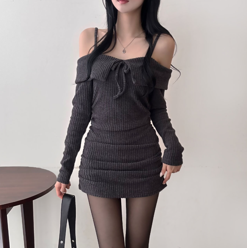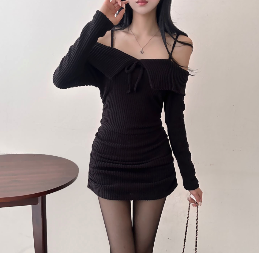 ₍˄·͈༝·͈˄₎◞︎ ̑̑露肩配小吊帶性感又迷人❤️側皺褶位仲可以修飾身形💕