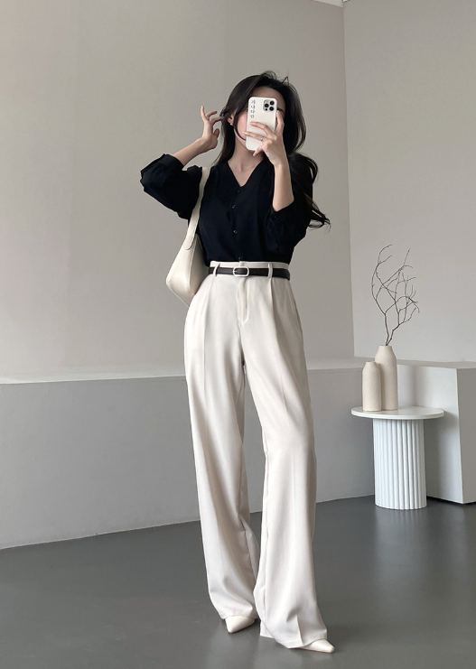 ヽ( ^ω^ ゞ )高腰寬鬆西褲💕而且有分長短款小個子高個子都合適❤️