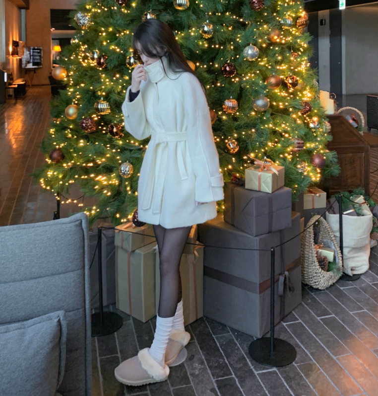 (●ˇ∀ˇ●)高領羊毛大衣十分保暖💕綁帶設計仲可以修腰身❤️